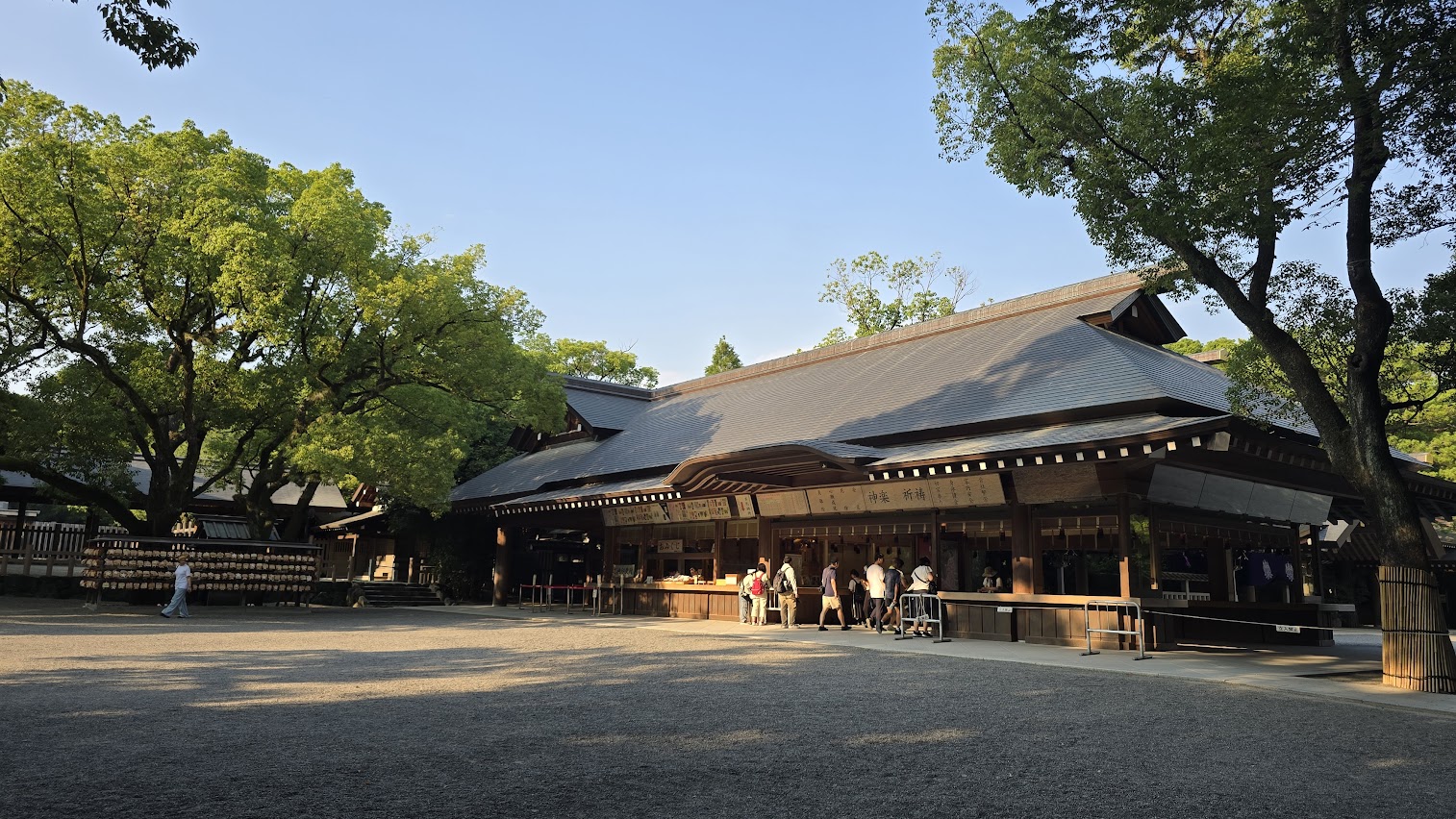 離開吉卜力之後, 因為天氣太熱, 我們捨棄了東山動植物園, 轉往熱田神宮. 這是日本三大神宮之一. 供奉的熱田大神算是天皇的 “草薙劍" 的化身吧. 宮殿並不高大但是壯闊宏偉. 他們 4 點鐘就無法入內參觀了, 所以我們只是在公園走走拍照.