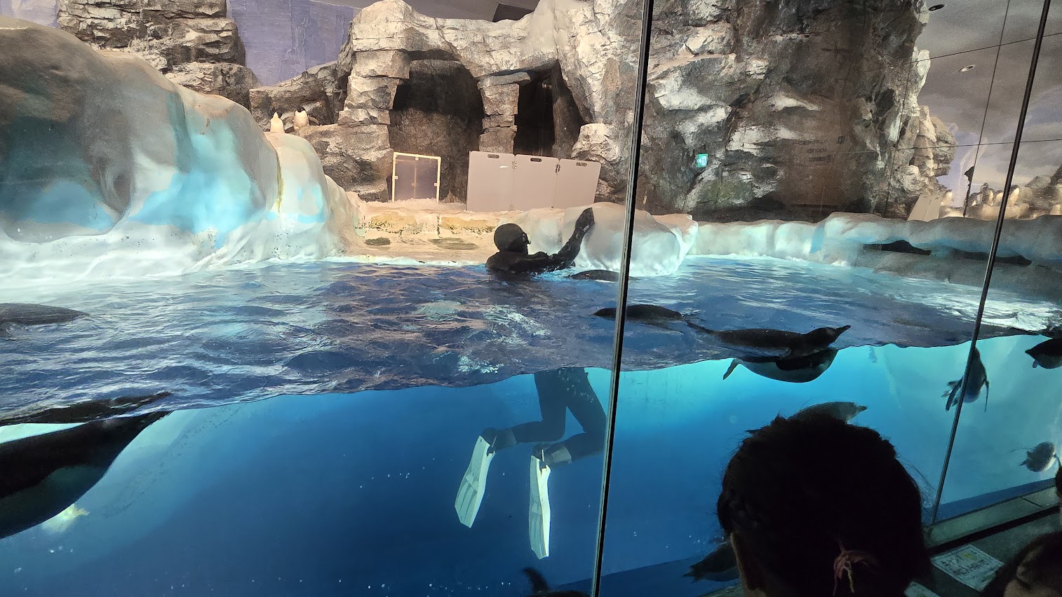 可愛的海豚表演當然在其他地方也有. 最特別的應該是打掃人員幫企鵝洗地! 另外就是海生館的販賣部, 賣的東西超便宜. 特別是跟前一天吉卜力比起來, 根本就是佛心價.