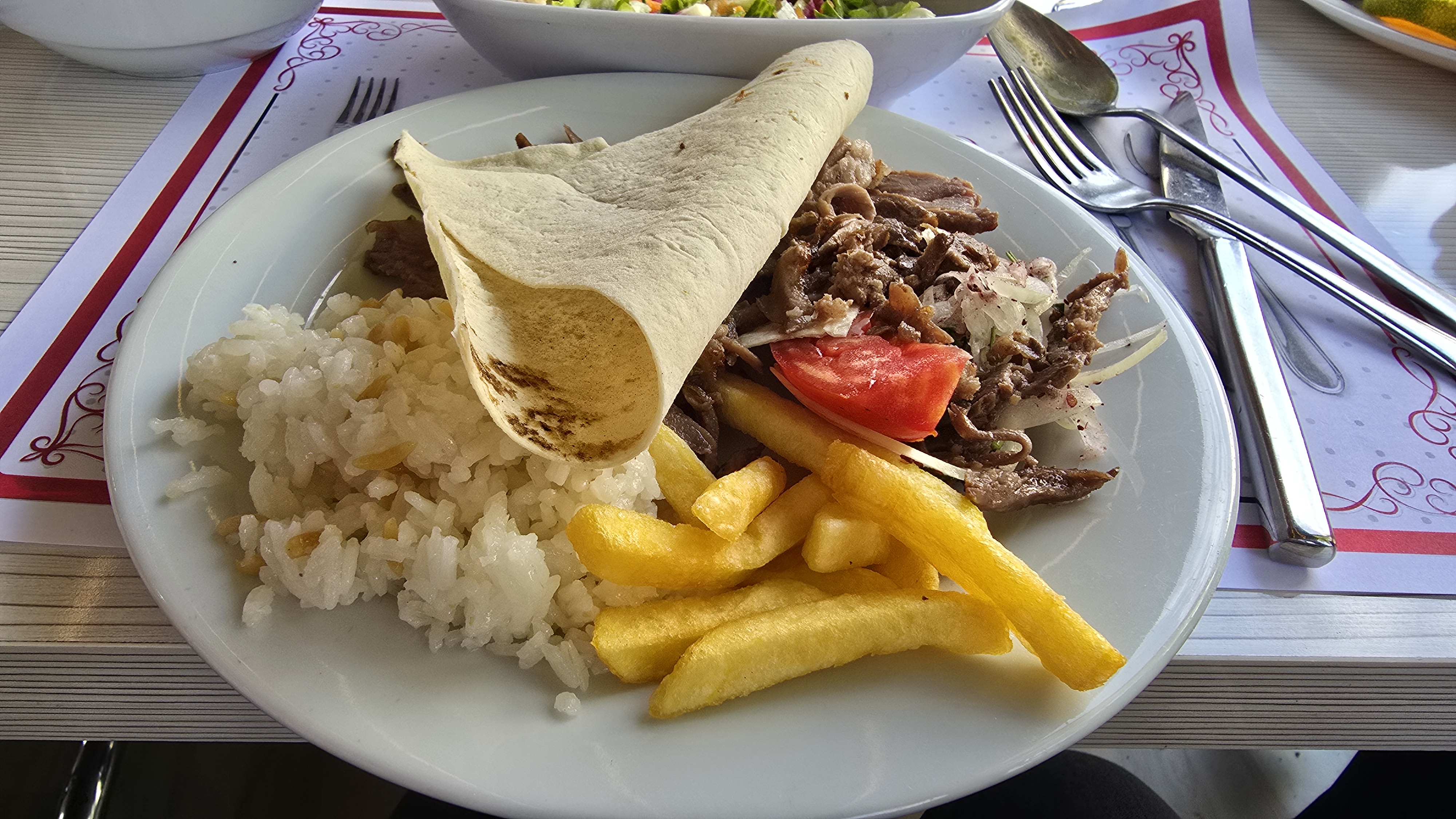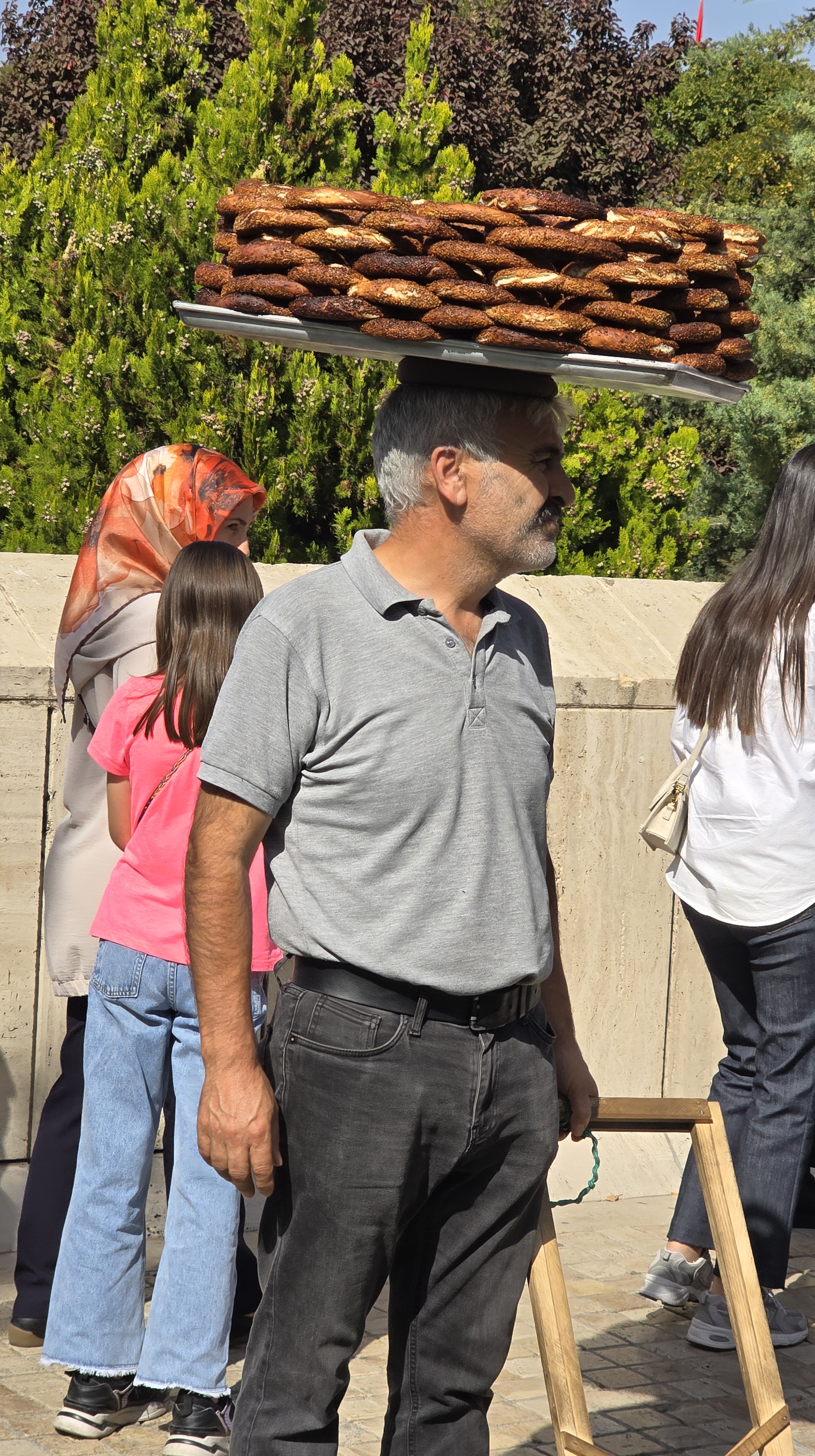 這天吃了一家 Anit Iskender Kebap Konagi 的烤肉店, 據說滿有名的. 另外不得不講一下土耳其也有很多絕頂高手, 像是下圖右這位賣傳統麵包的小販. 走來走去麵包都不會掉.