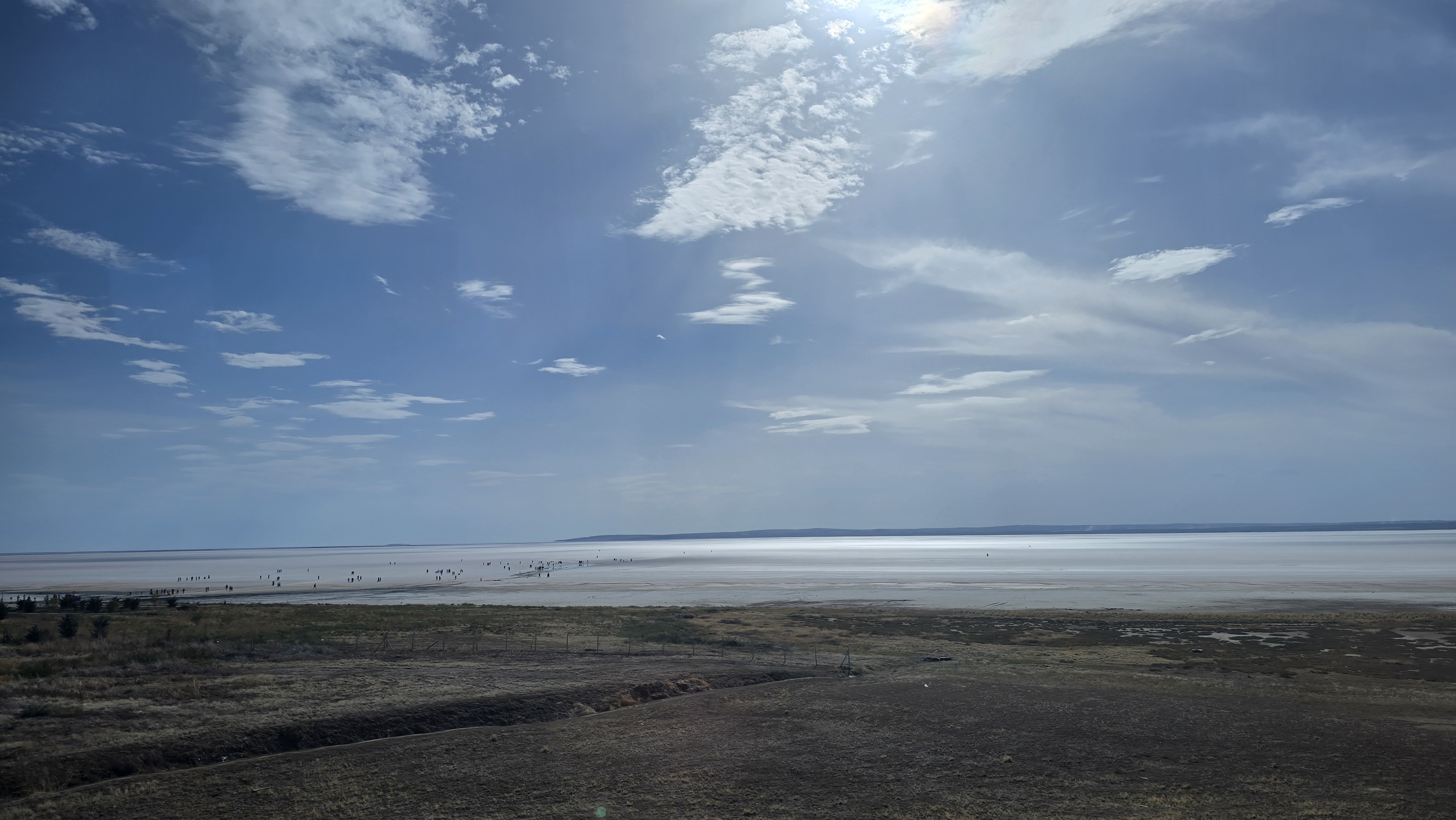 圖茲湖是土耳其第二大鹽湖, 面積是台北市的五倍大, 土耳其40%的鹽都是從這邊生產. 圖茲湖有名之處在水中的藻類讓湖水呈現粉紅色, 景色非常奇特. 此外, 圖茲湖的湖水水位很淺, 人可以走到上面, 拍出像玻利維亞天空之鏡的畫面. 但十月是乾季, 沒有水就沒有天空之鏡了. 倒是可以隨手抓起一把鹽.