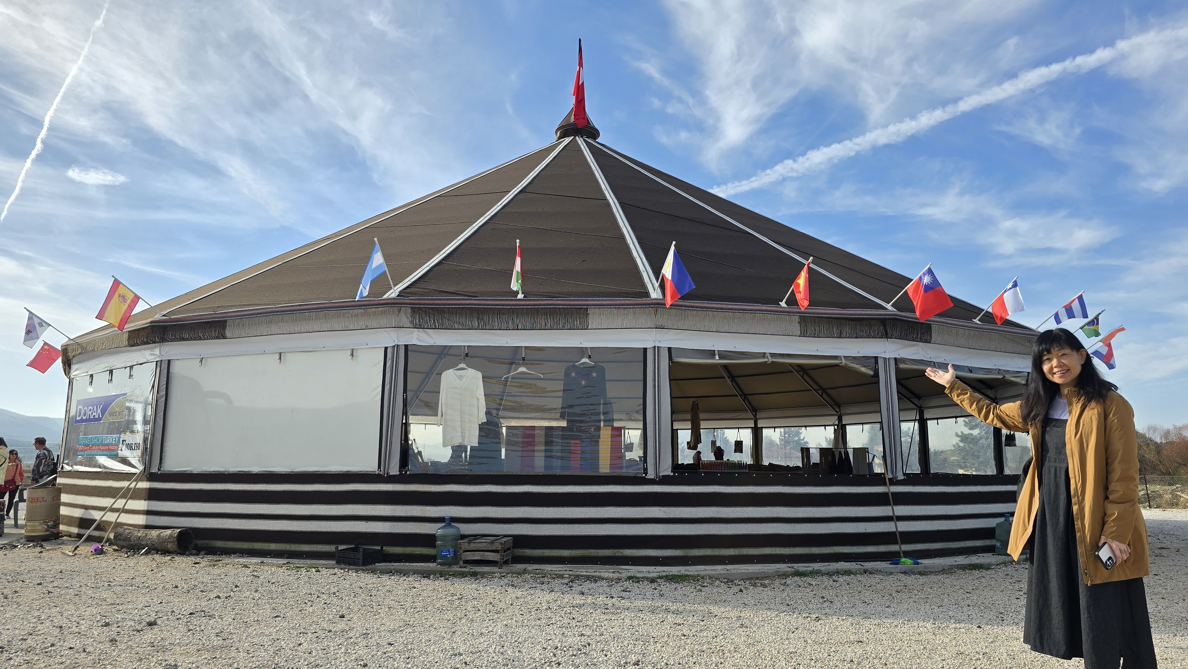 一早起來趕路,要去阿斯班多斯 (Aspendos)。這裡有一個保存完好的劇場。路上經過一個掛著中華民國國旗的休息站,大家在這裡喝現榨的石榴汁。因為大家都想嘗鮮,這應該是整路喝到最貴的。