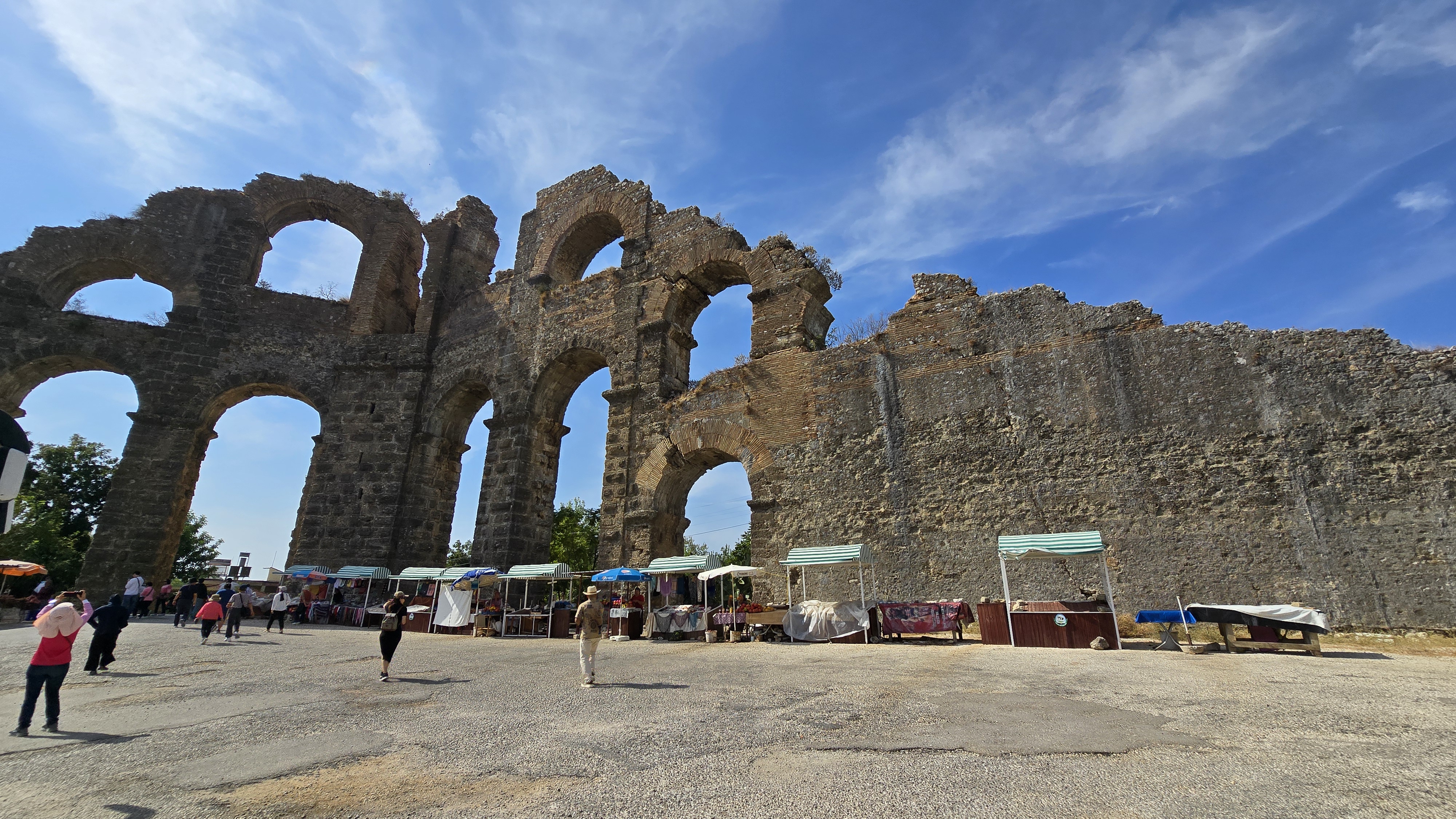 然後參觀古代的水道橋 (Aqueduct),這個就很殘破了。底下一排攤販也是石榴姐在賣石榴汁。