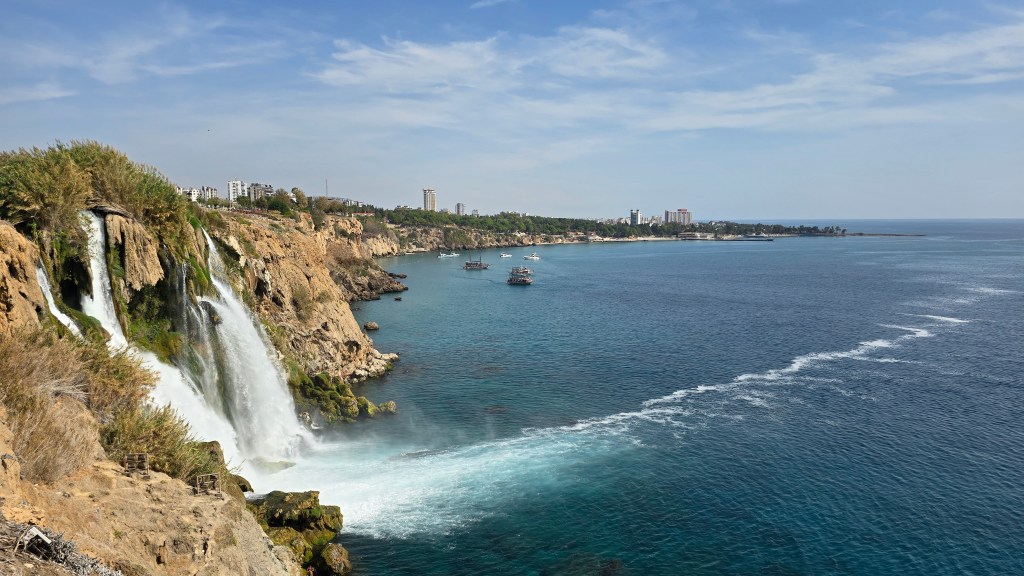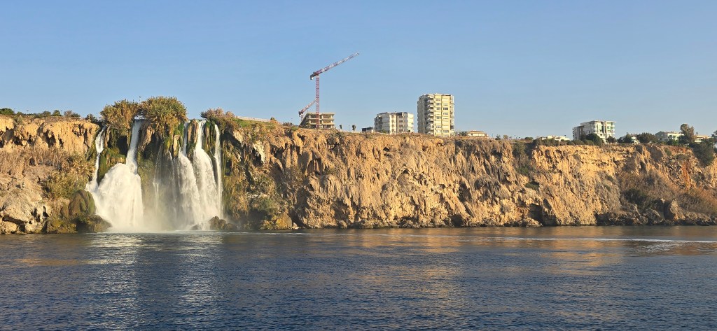 接著來到安塔利亞 (Antalya) 看杜登瀑布 (Duden Waterfalls)。這裡其實是 (Duden Stream) 運河流入地中海的人工瀑布,誇當的高地落差和豐沛的水量,把這裡變成一座公園。