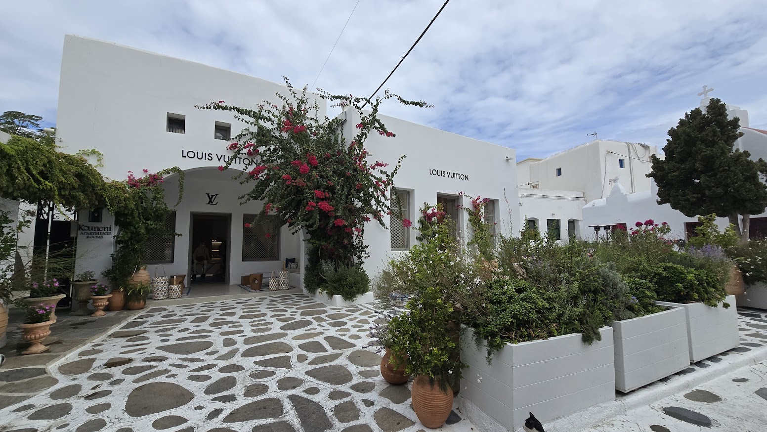 這天入住的旅館 (Portal Mykonos Hotel) 還滿漂亮的,我沒有住過景色這麼好的飯店,所以一定要拍張以愛琴海為背景的工作照。
