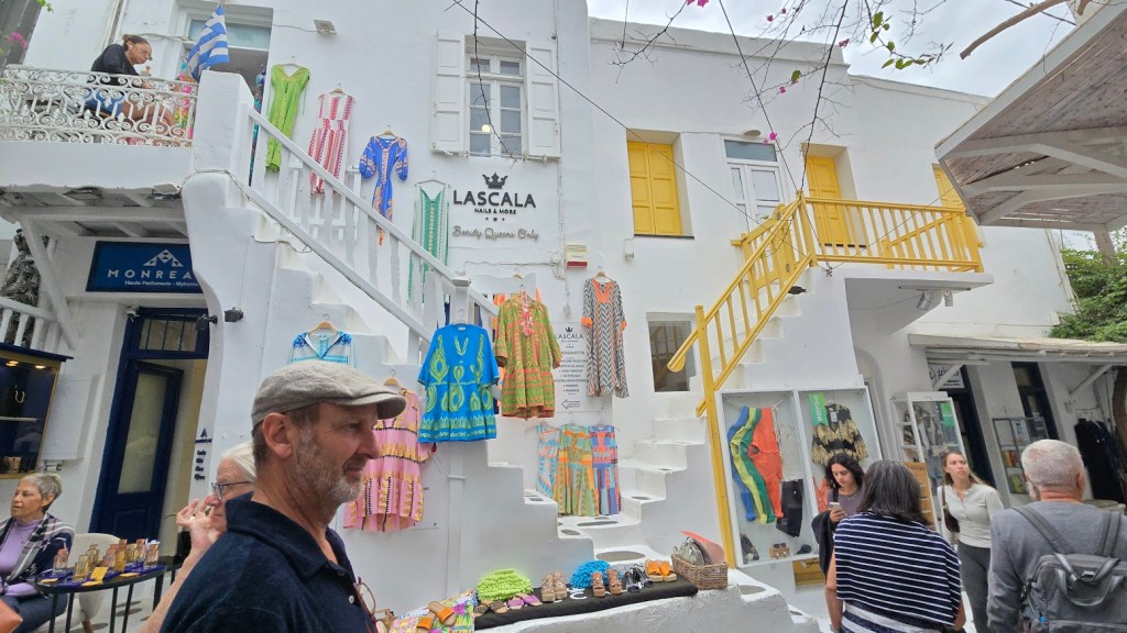 2025/9/28 (日) 起床後在雅典搭船到米克諾斯島 (Mykonos)。這個島相當有名,不過事後回想起來,跟其他島沒有什麼太大的不同,就是觀光客特別地多!車子也可以搭渡輪,不過我們的遊覽車就沒辦法,一個人的船票是 50 歐元。