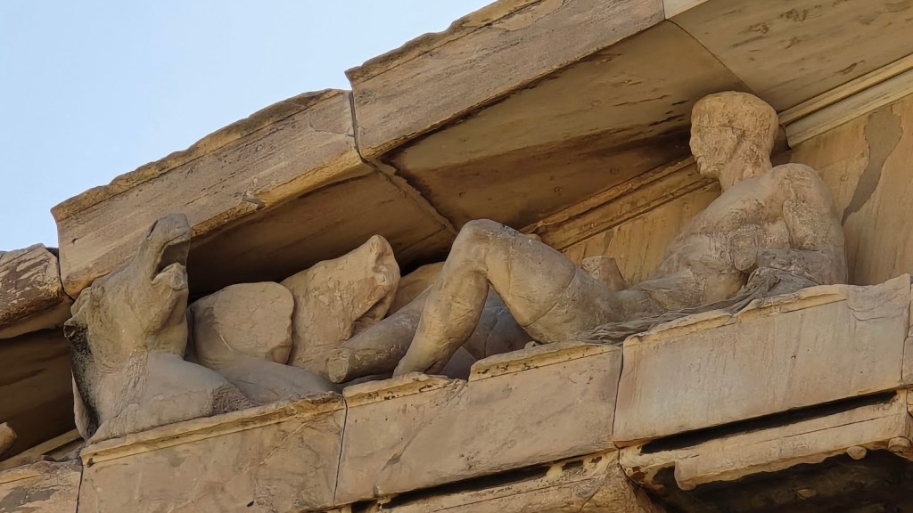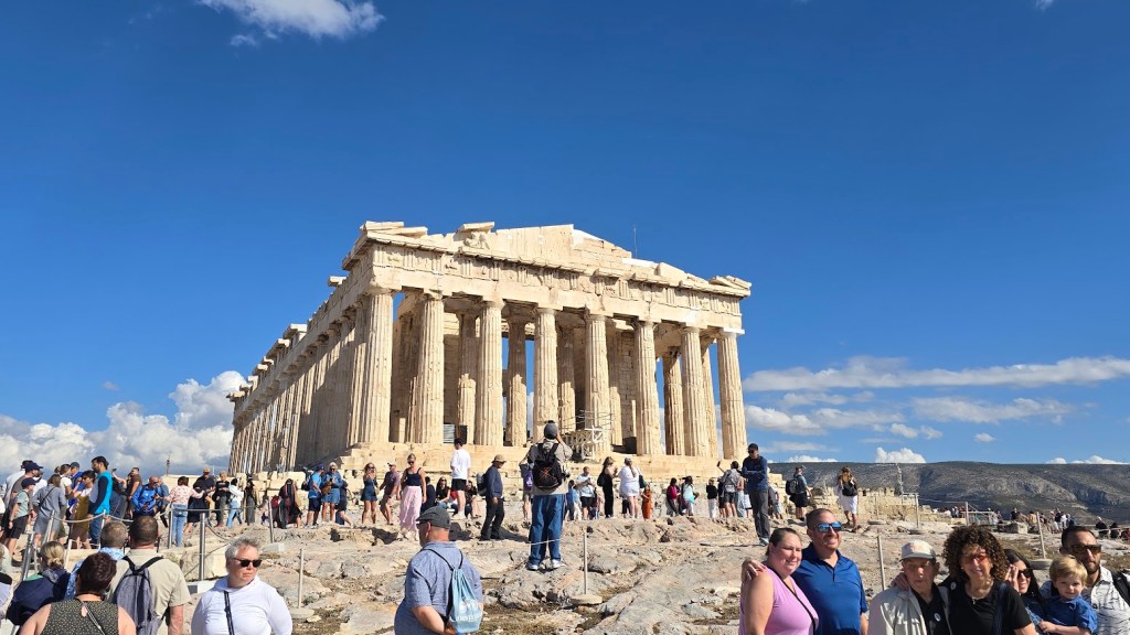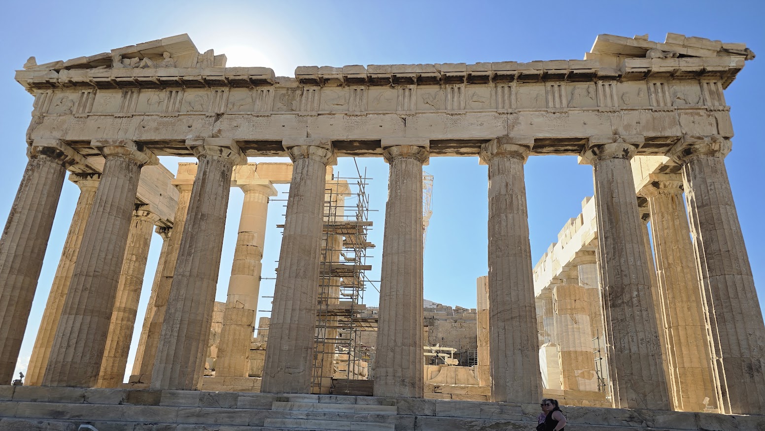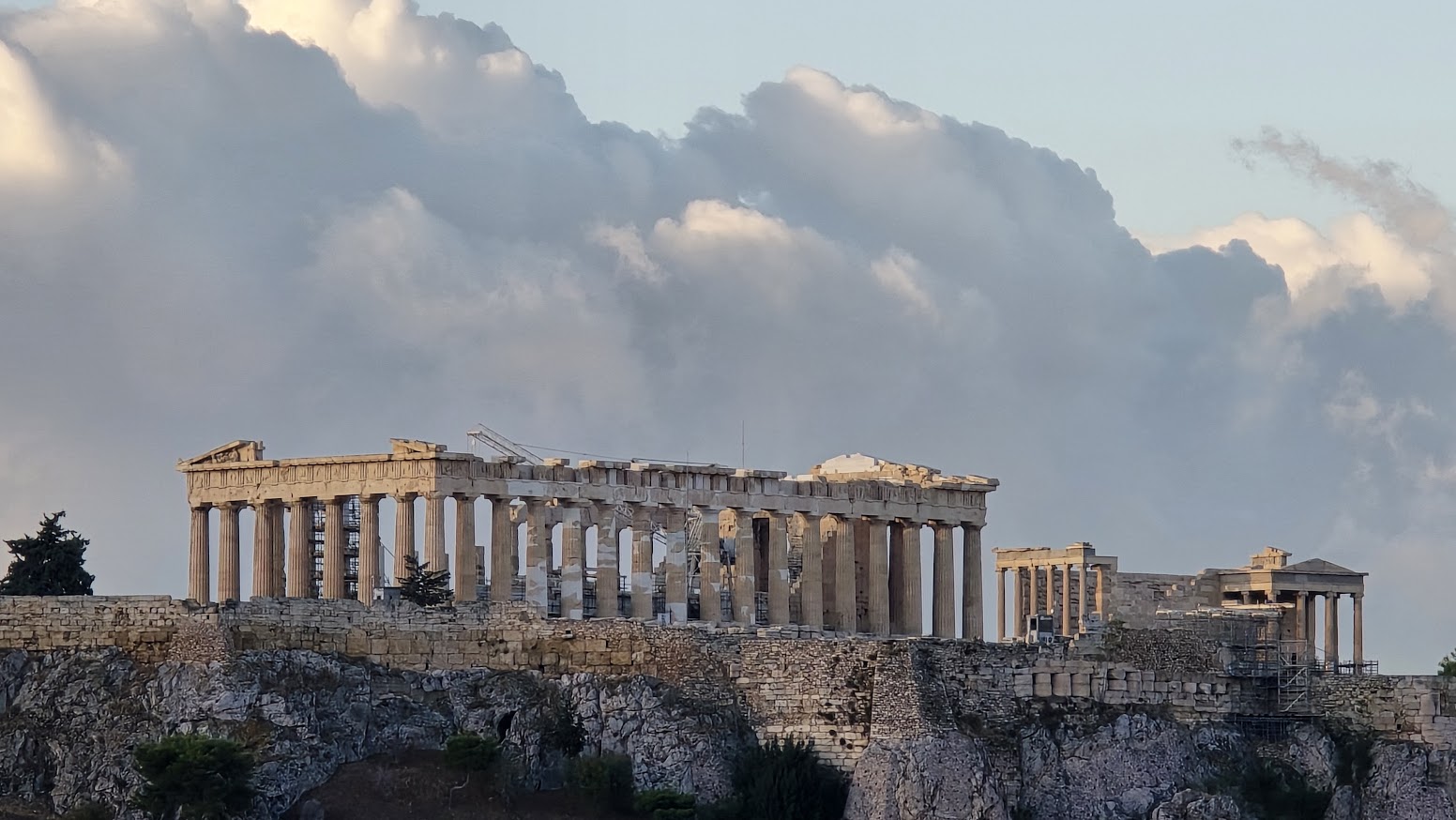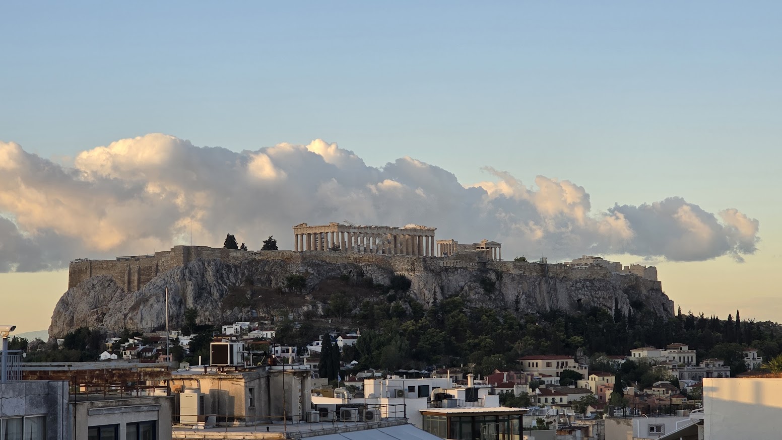 衛城 (Akropolis) 不但就在雅典,而且從很多地方一抬頭就會看到它。衛城這個名詞不是專屬的,只要蓋在都市的制高點都是衛城。但雅典這個肯定是最有名的,因為它有世界七大奇景之一的巴特農神殿。