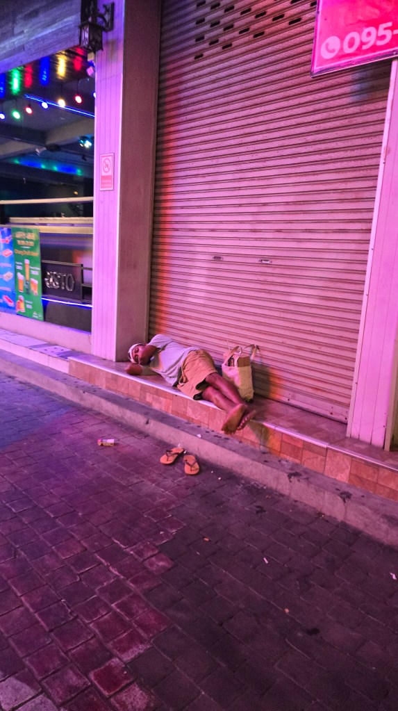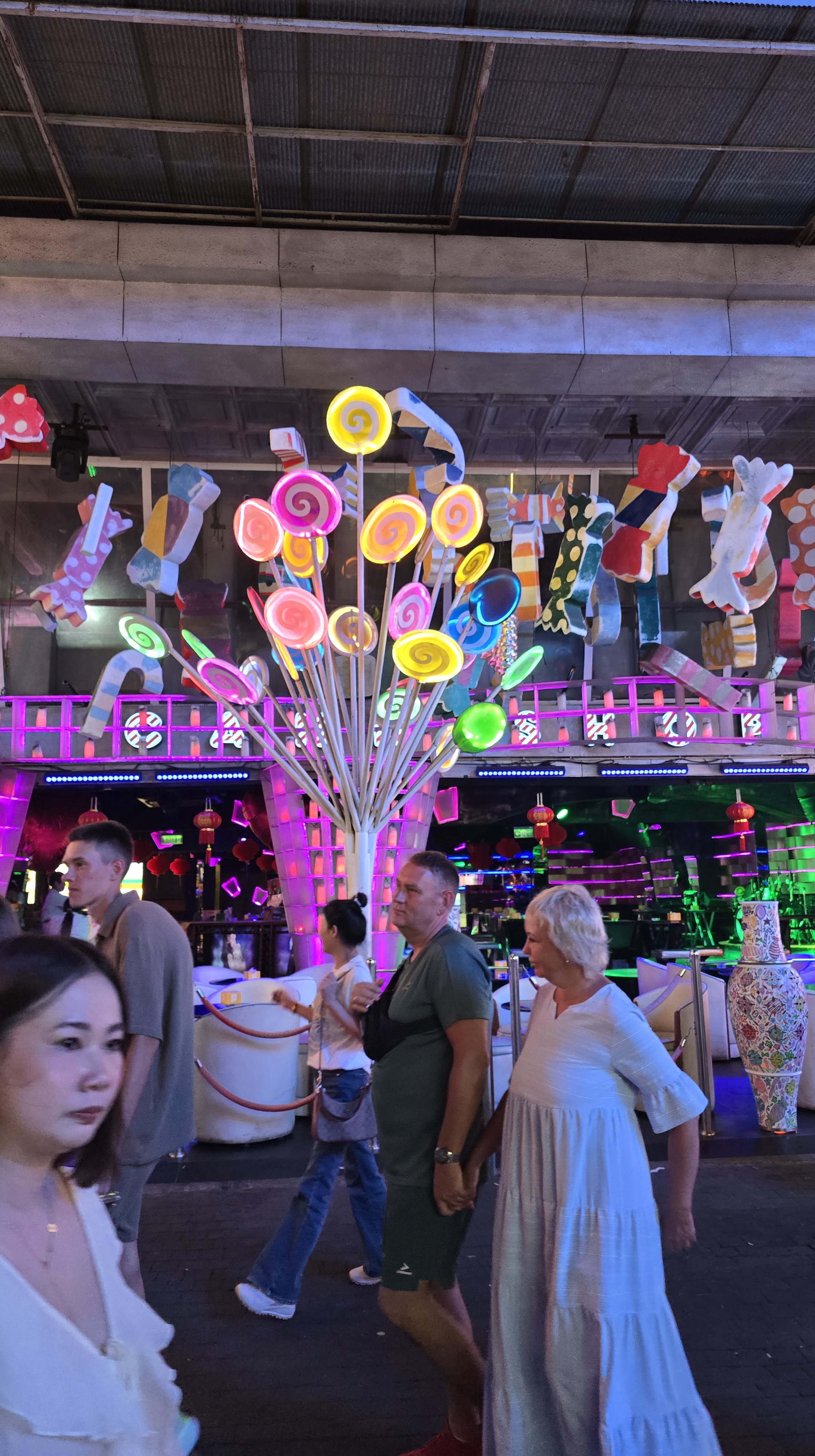 疫情過後,Pattaya 往國內消費者靠攏。但是特種行業還是隨處可見。門口有小姐排排站的大概七八家,看起來像是高級俱樂部的大概四五家。用橡皮球丟靶,讓兩個"女"生落水的的攤子大概也有五家。(因為她們有些長得過於虎背熊腰,我不太確定是否是女的?)