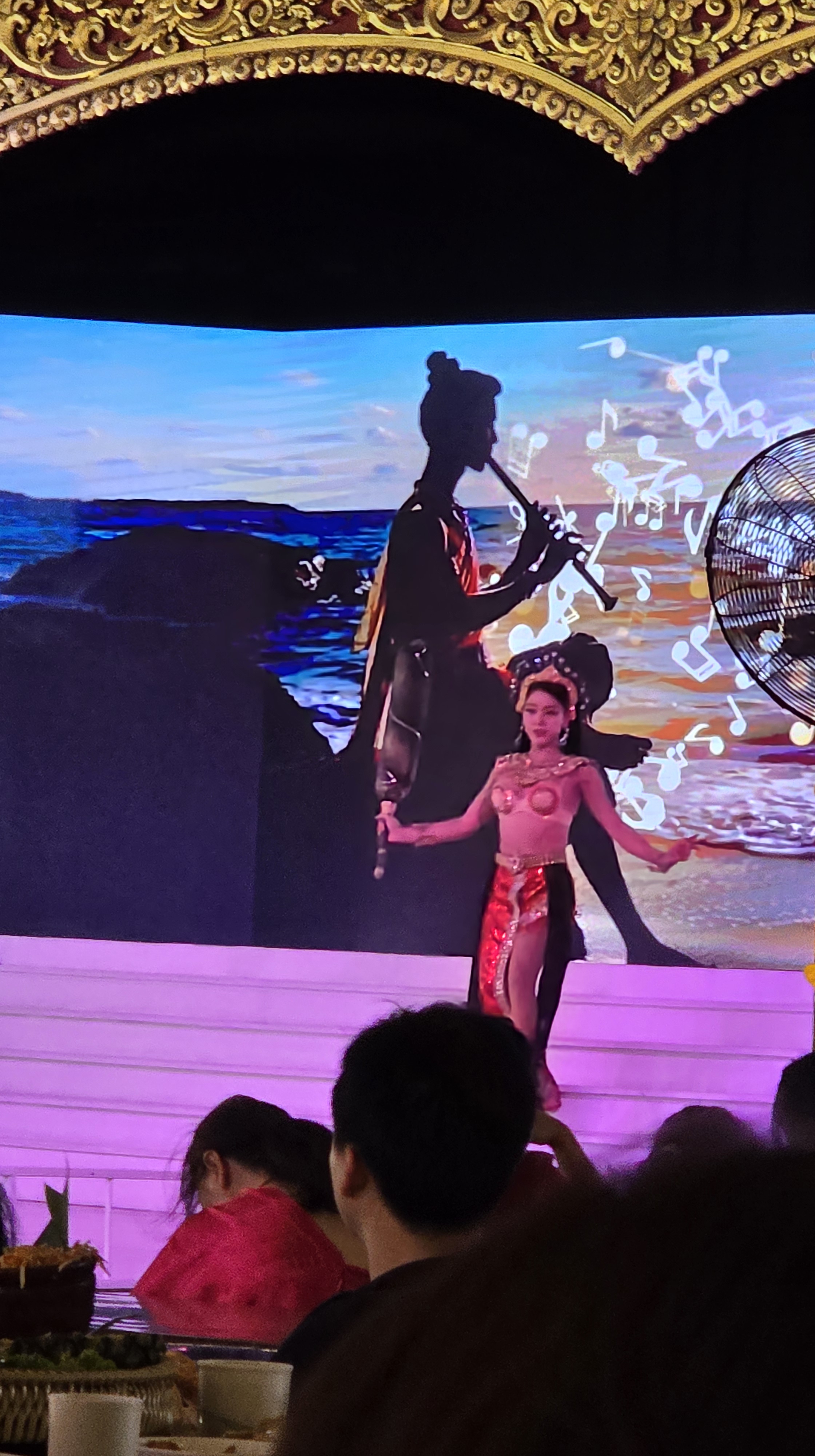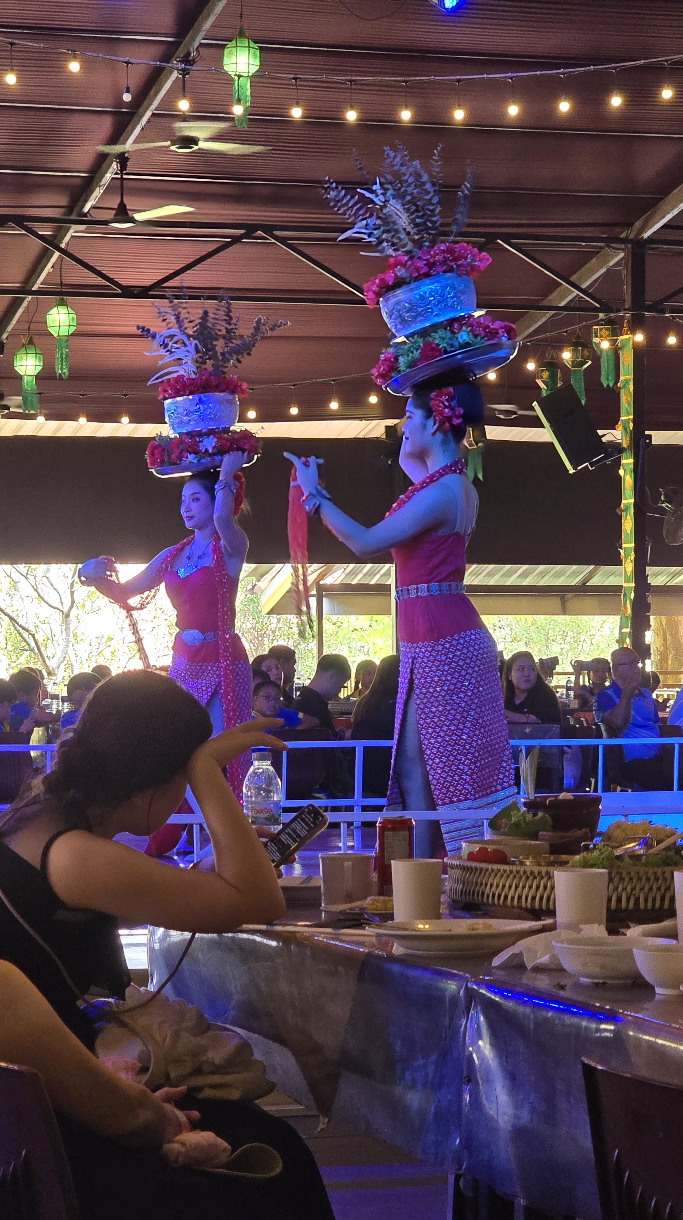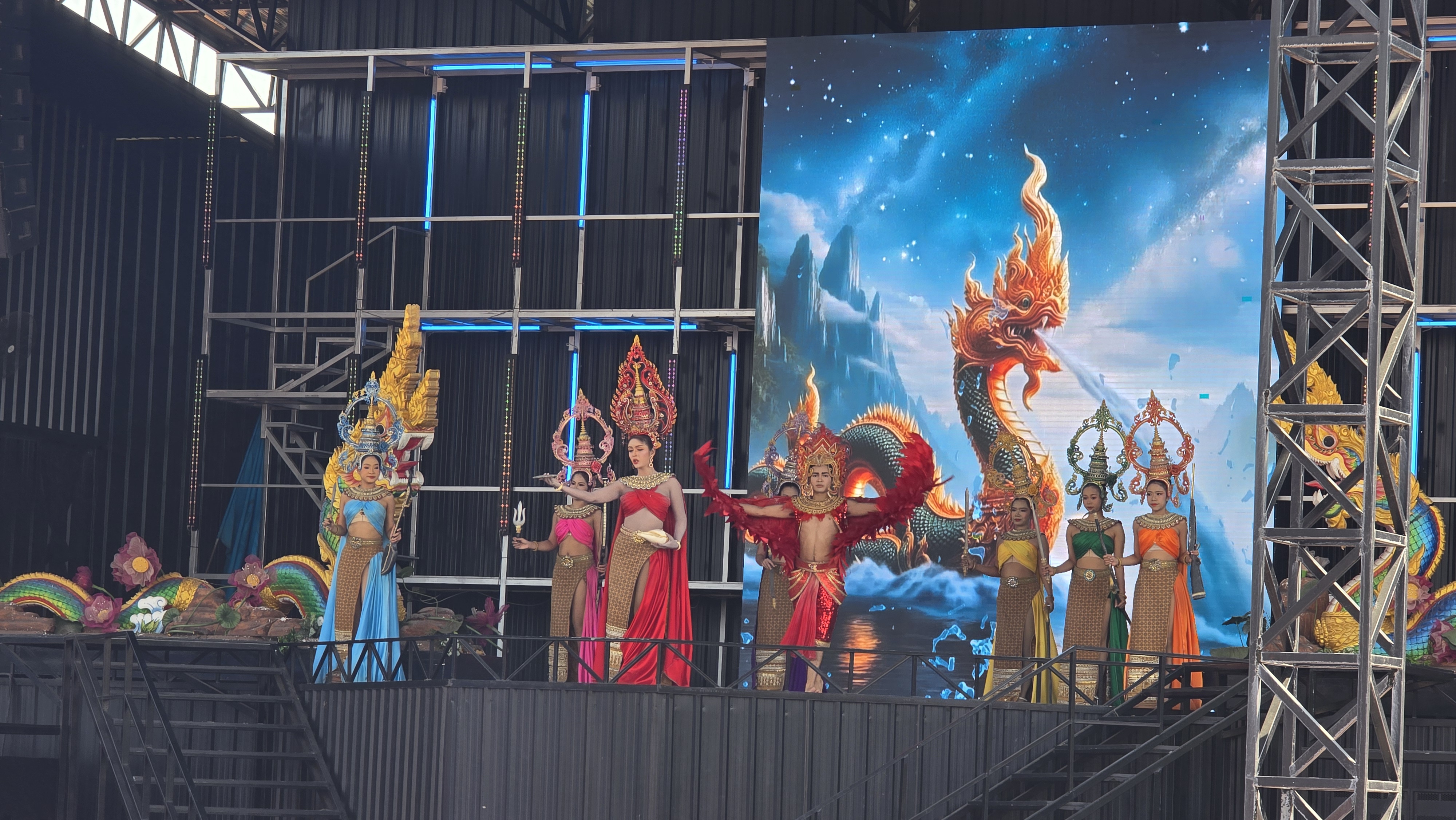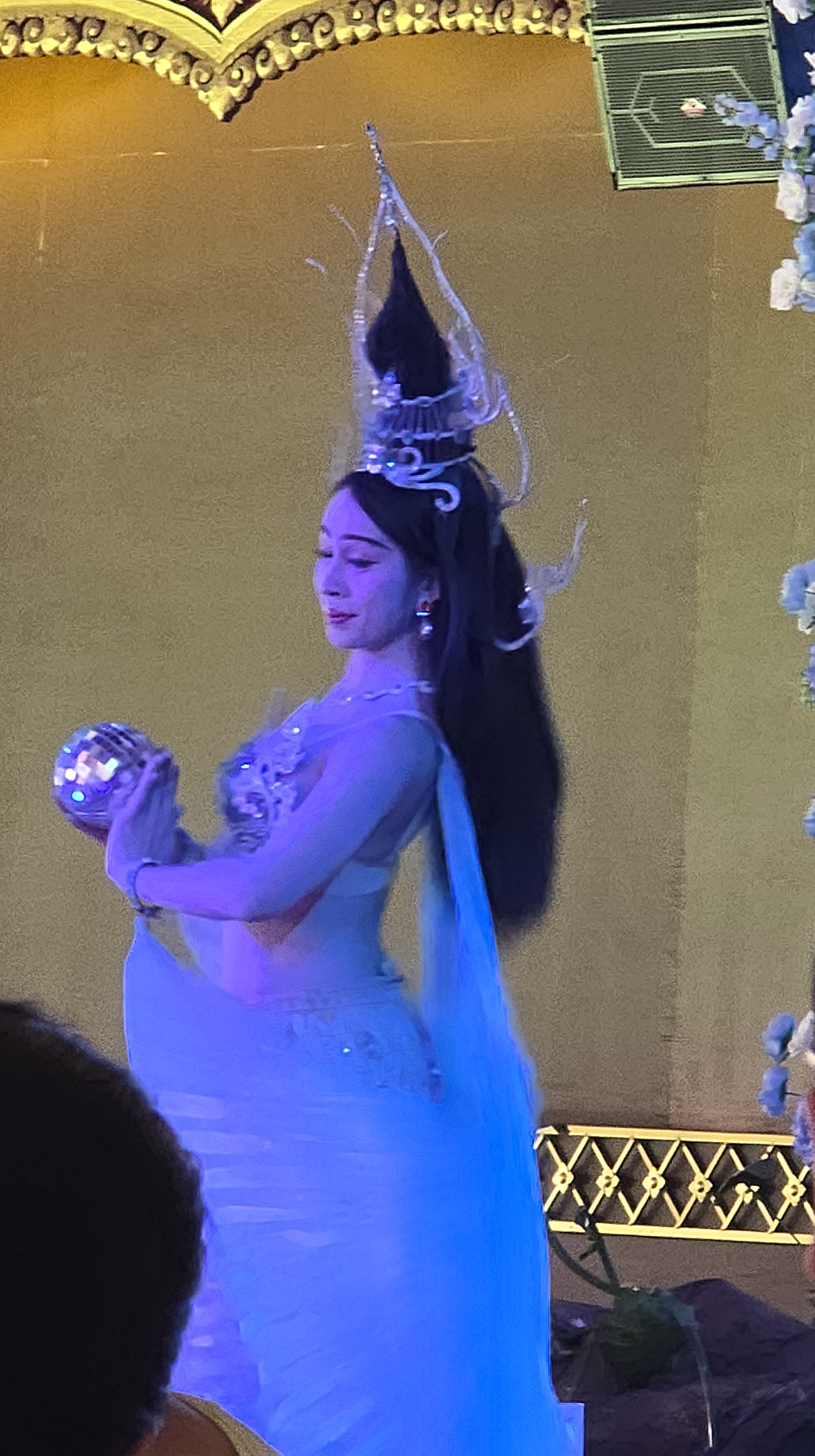 舞台上的表演動作很簡單,但是服裝相當華麗。如果這些表演都有考據的話,我可以歸納出泰北擅長孔雀羽毛當裝飾,東北區則是有高冠和薄紗。