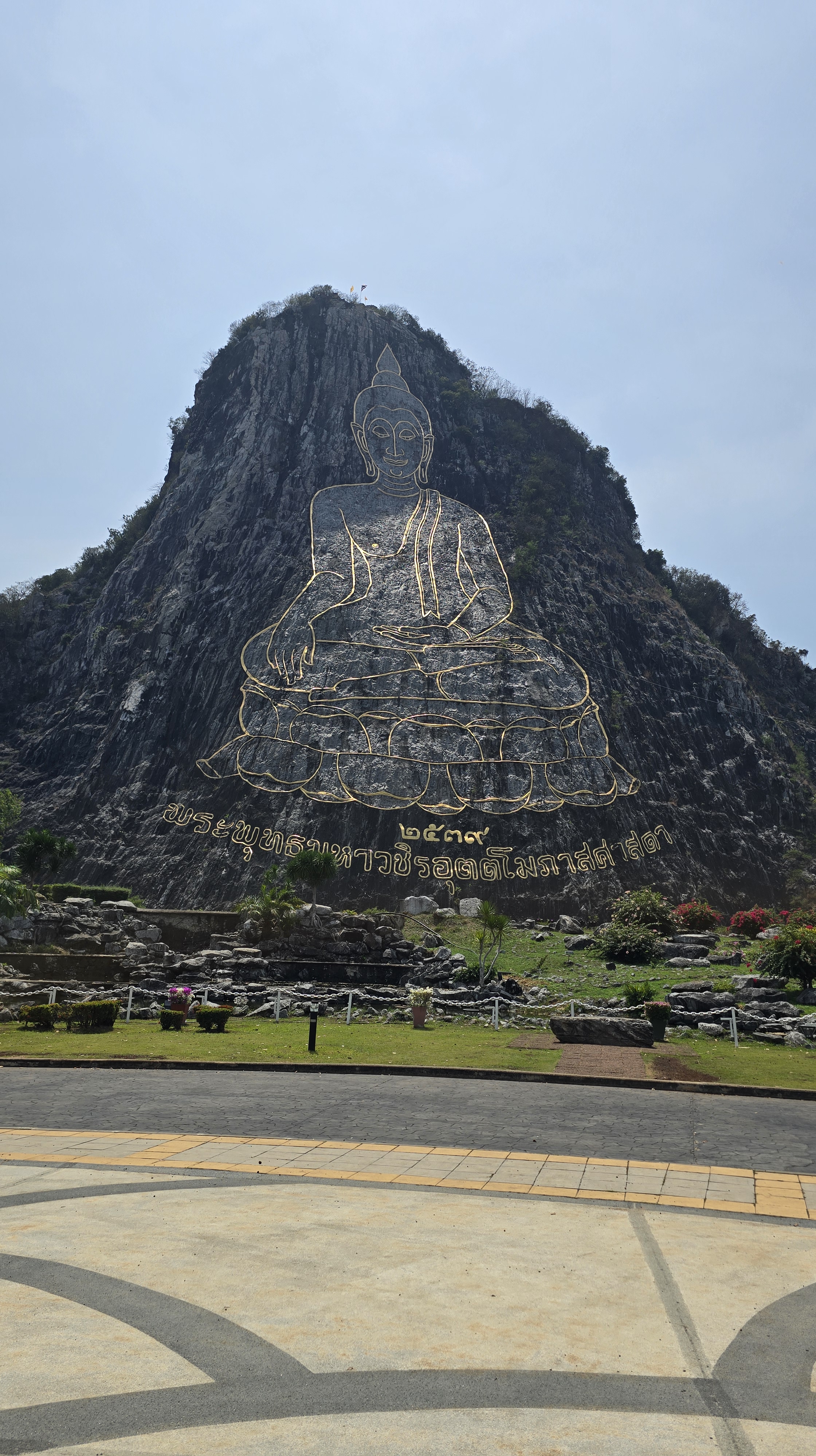 看完表演就上遊覽車,繼續前往七珍佛山 (Khao Chi Chan)。它是在 1996 年為了慶祝泰國九世皇登基 50 週年而建造。釋迦牟尼佛是用金條描出來的。