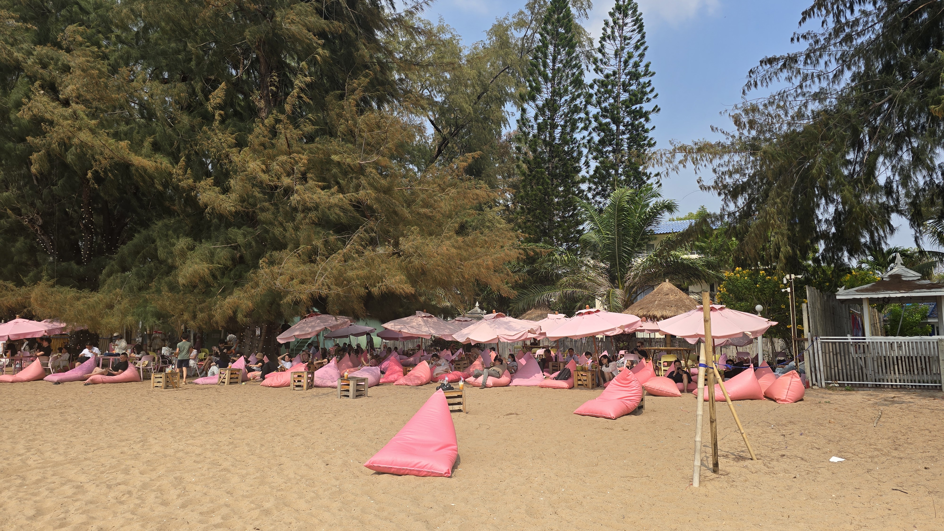 原定計畫,這個行程是讓大家躺在沙灘上喝咖啡、椰子汁放空。不過看起來店家超賣了。所以花了半小時才靠領隊導遊佔到座位。