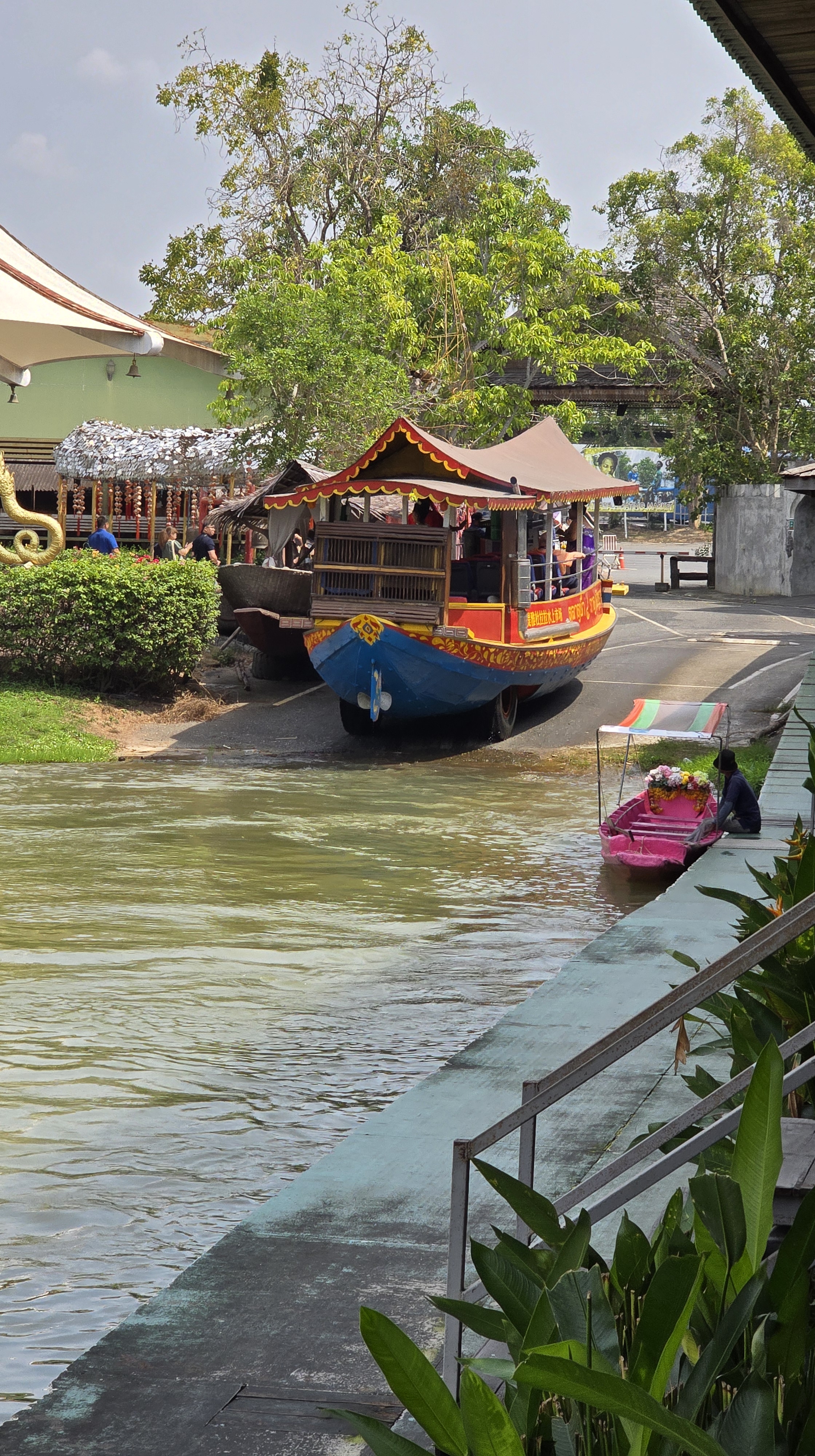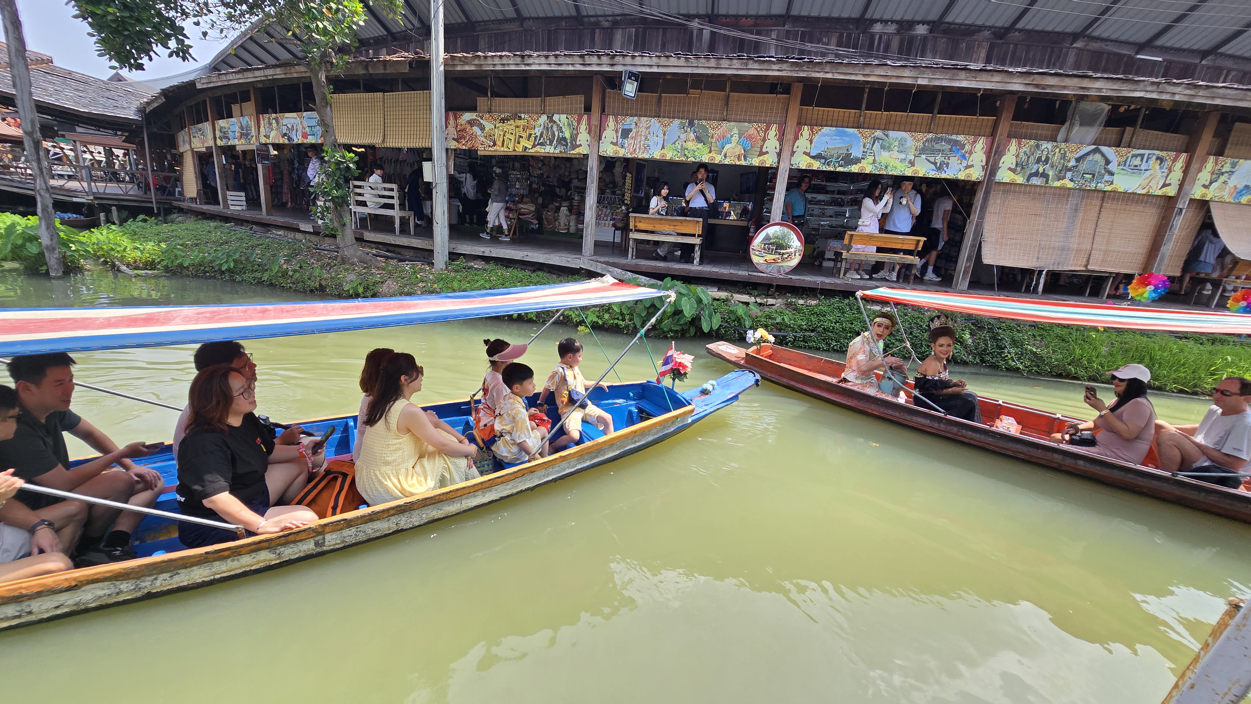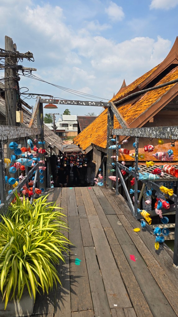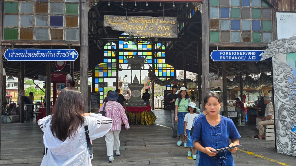 這個景點跟想像中不一樣。首先我想既然是市場,當然是開放的。不過它既要買門票,還要過安檢。KK Day 上賣的門票是 122 NTD,門票帶划船是 304 NTD。可以理解為進去買東西需要花 120 泰銖。那肯定是觀光性質居多,本地人一定不會去。