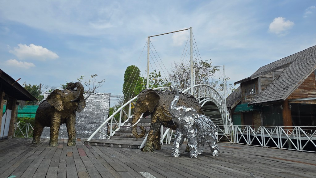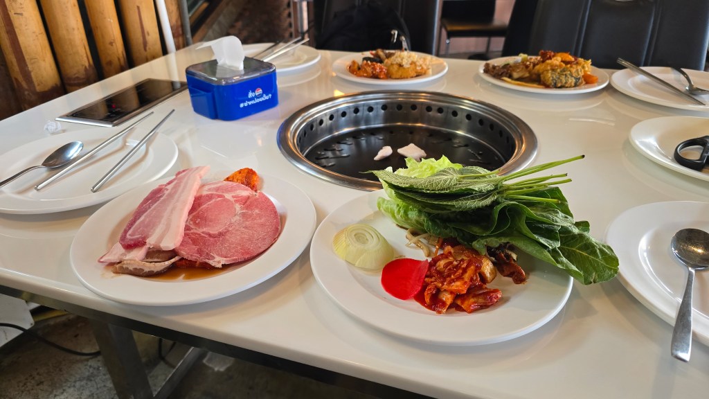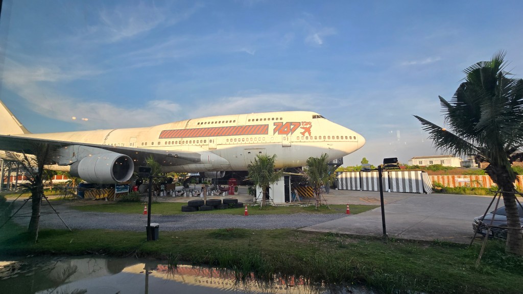 看完動物接著就去吃動物,喂!晚餐是在吃到飽的韓國烤肉 Itaewon Buffet。可以烤的東西也算不少,但很快就吃飽了,感覺不太能回本。但網路上說這家店人均 200~400 泰銖而已。這種物價也太神奇了。對了! 最神的應該是連鎖牛排店推出 39 元雞排吃到飽。導遊都不知道他們怎麼生存的? [1] 旁邊有一架報廢的 747,裡面有火鍋店和咖啡店。