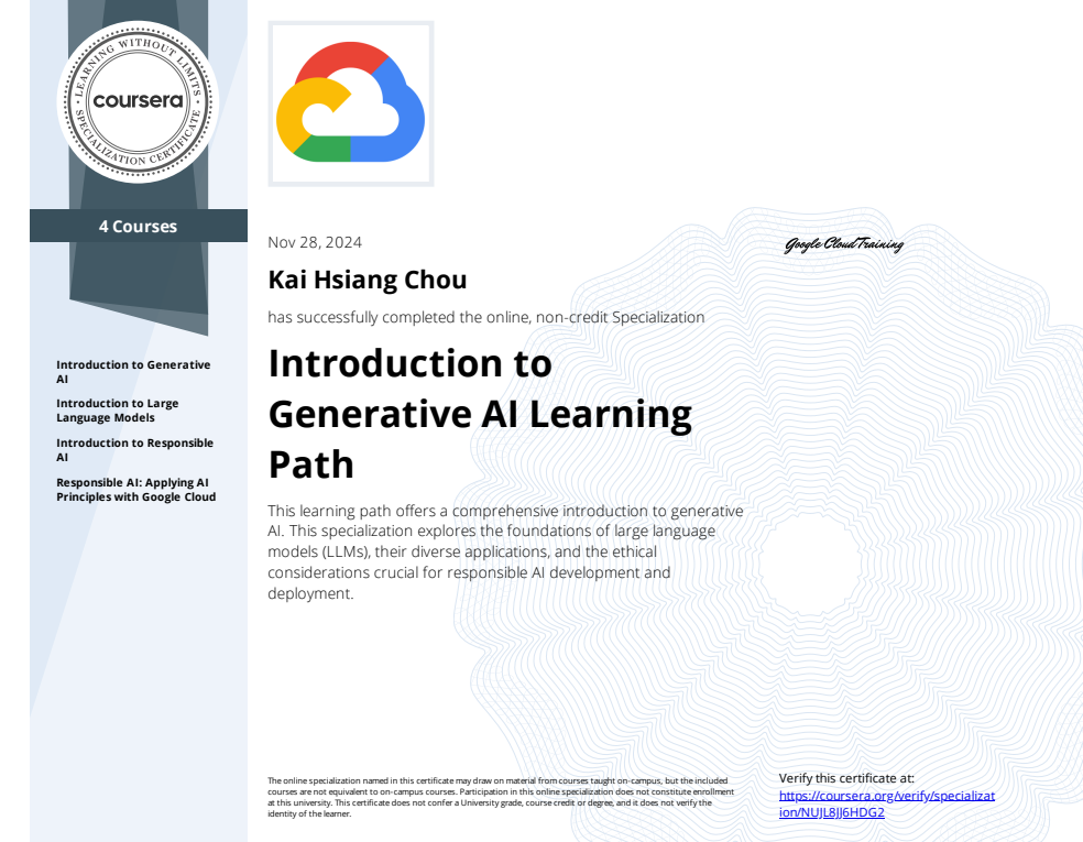 | Introduction to AI and Machine Learning in Google Cloud | 2024/6/30 |