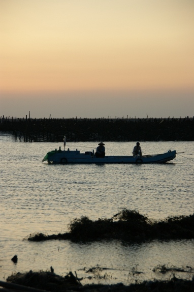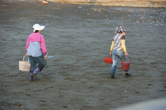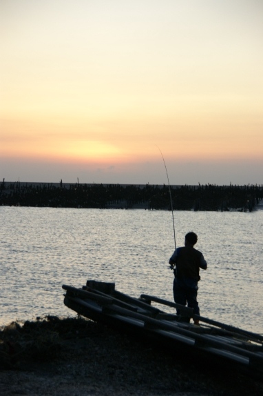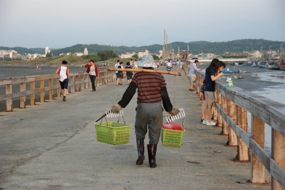 今天去海山漁港, 時間是黃昏, 這邊有人在採收青蚵, 也有人在挖可以食用的貝類. 有人釣魚, 也有人玩沙. 我覺得氣氛相當地好喔!
