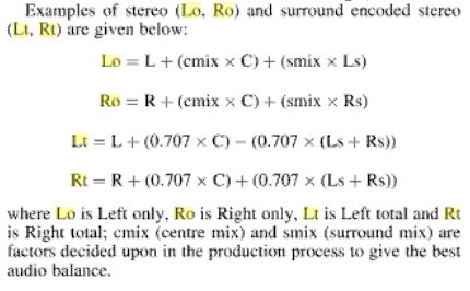 其中, Lt 和 Rt 是固定參數, t 表示 total, 左聲道會有右聲道的成分, 反之亦然. Lo 和 Ro 是變動的參數, o 表示 only, 左聲道不會混到右聲道, 反之亦然.