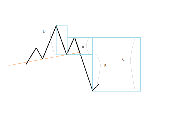 此外, 作者認為頭肩的高度也是呈比例關係的, A = 0.618 x D (費伯納西數列比例的倒數). 所以 D = 1.618 x A.