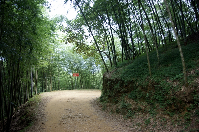 路上的風景還不錯, 主要都是竹子. 也有很漂亮的鵝黃色大蝴蝶. 只是牠翅膀合攏的時候, 和落葉形成保護色.