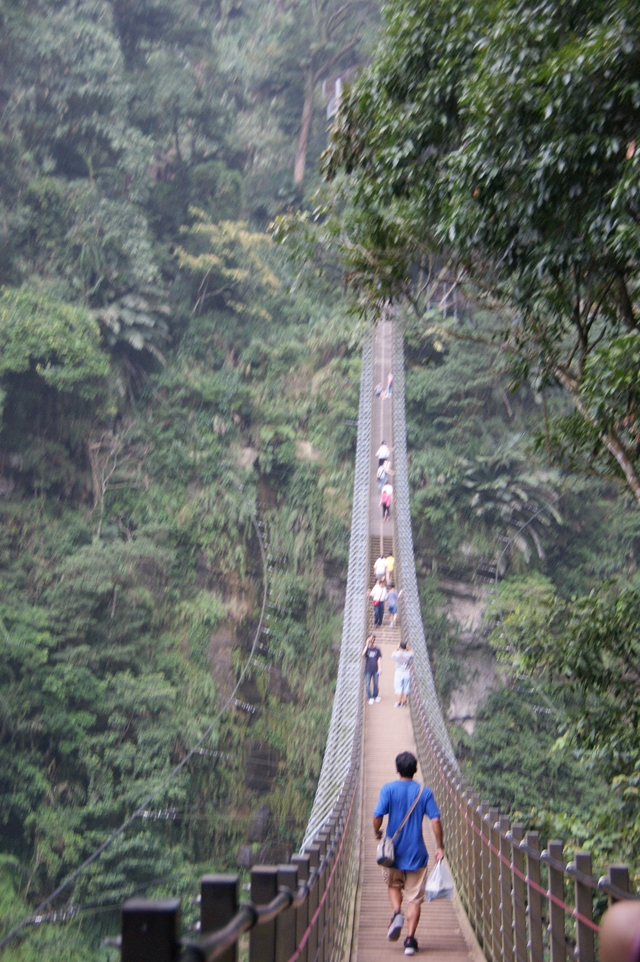 當我們準備回程的時候, 天空雷聲隆隆, 接著就下起了大雨. 因為我們三個人只拿了一把傘, 所以我就用背包附的帆布袋遮住頭髮, 其它地方就任雨淋了. 回到入口處的時候, 不但我已經全身都濕透了. 就算是撐傘的老婆和女兒, 鞋襪也都進了水. 我們用了約 20 分鐘往下走, 15 分鐘在橋上, 45 分鐘返回入口. 因此我們的停車費也很幸運地只要 30 元而已.
