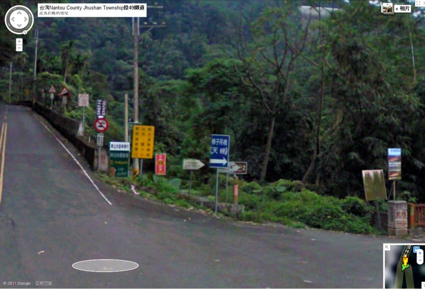 我回想起某個網站上的確有寫過天梯有兩條路, 其中一條好像被封閉了, 也就是路口的那個禁止號誌吧!? 所以我決定上網確認一下. 用手機 Google 真的不太方便, 我花了十分鐘還找不到上次的網站. 所以只好聽從老婆的說法, 走右邊這條路. 等我走到復興寮, 那兩台車剛好就出現在我的面前. 可見得右邊這條的確比較快. 回程的時候, GPS 仍然帶領我走左邊這條路, 它不但比較陡, 路比較窄, 而且有落石和土石流.