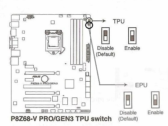 最後怎麼解決的呢? 我想如果卡沒問題, driver 沒問題, 電流沒問題, 搞不好是記憶體的問題. 上次裝機時, 我順便把 P8Z68V-Pro 這塊主機板上的自動超頻打開了. 說不定它自我感覺良好地超到跑不動的地方去了吧?! 果然我把機殼拆開, 把那兩顆開關關掉, 一切就恢復正常了! 也許關掉 TPU 就行, 不過我為了省事就全關了.