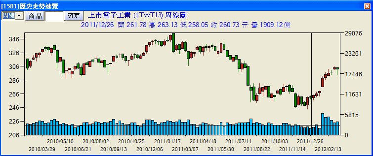 結果漲是漲了, 但是沒什麼 “動逃". 本書出版之後, 果真看到一波跌勢. 至於股價會跌的原因, 大家現在都知道了, 那就是歐債危機. 這一年不只電子股在跌, 台股也同樣在跌.