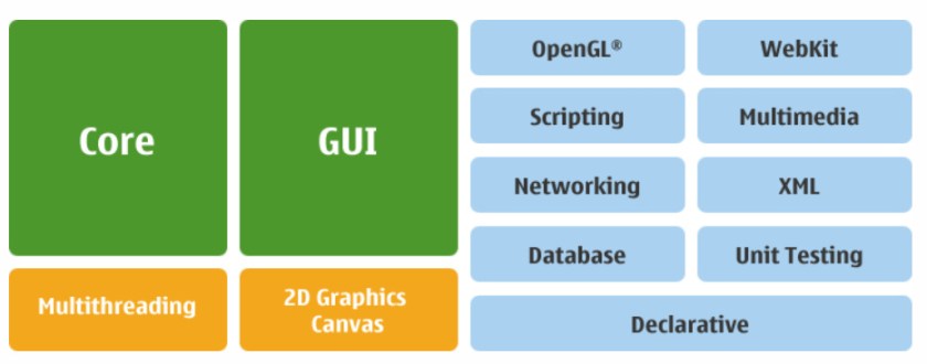 | QT Modular Class | V | * | V | V | 如下圖, Qt 廣泛地包含了許多其他規格, 期中也包括 3D 的插件, 所以用 * 號表示, 下面 GTK 亦同. |