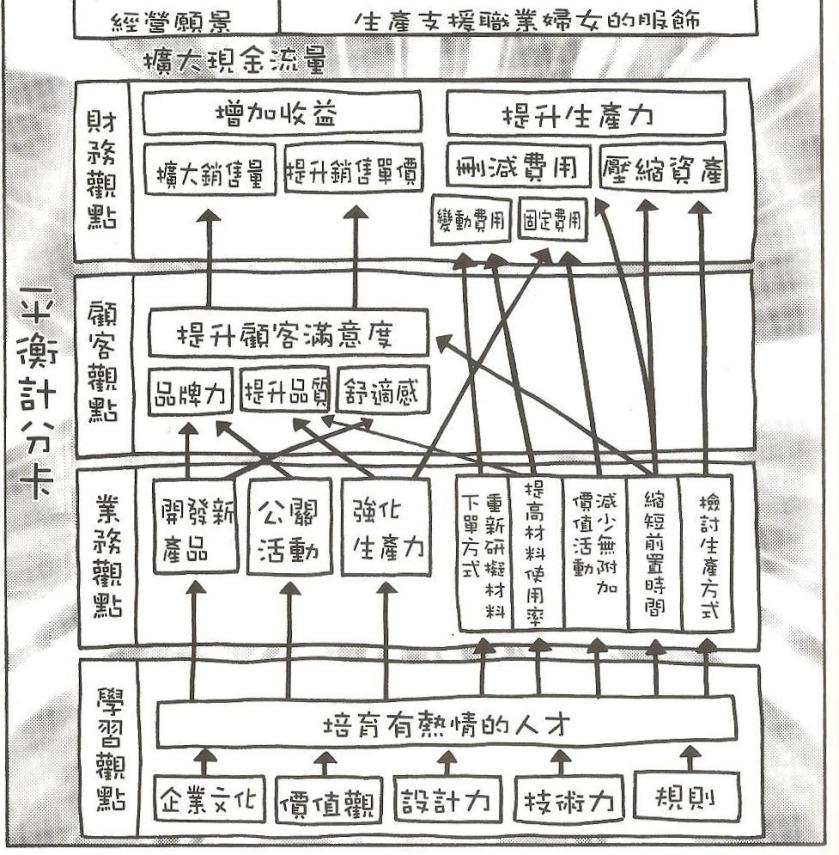 最後安曇教授把由紀的夢想 (公司的經營願景) 和財務連結起來, 做成下面這章平衡計分卡.