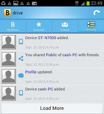 B Driver 基本上是變形的 Dropbox, 所以它沒有 server 的概念. 在 Windows, IOS, 和 Android 三個平台上都可以看到同一個帳號在不同主機下的硬碟 (的某個目錄). 不論從哪裡連進來, 都是一個 device. 而且點進去之後, 它還直接有一個 dropbox 的功能, 可以和 dropbox 互傳內容.