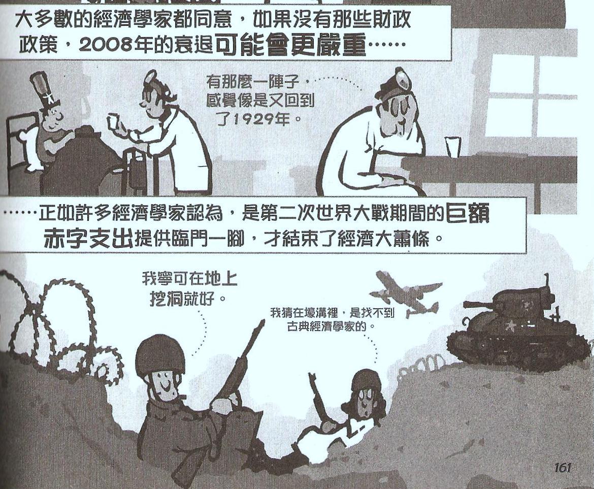 本書最後一部是全球經濟, 這個單元最重要的議題之一是如何避免經濟衰退. 美國曾經經歷過 1929~1933 年的大蕭條, 它無論在 GDP、 失業率、全球貿易衰減幅度、和時間長度上都比 2007~2009 的金融海嘯來得嚴重. 經濟學家認為主要是聯準會的政策不同所導致的結果. 現代的做法是用寬鬆的貨幣政策來刺激經濟 – 低利率、刺激放款, 甚至採用了財政政策 – 減稅等等. 許多專家甚至認為第二次世界大戰帶來的巨額赤字支出, 使得美國提早擺脫大蕭條.