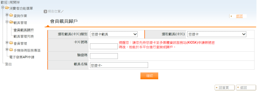 6. 走到這一步還差載具的設定. 所謂的載具包括手機條碼、悠遊卡、晶片卡、會員卡、金融卡等等. 電子發票先存到載具, 然後中獎的發票才能進到個人帳戶.