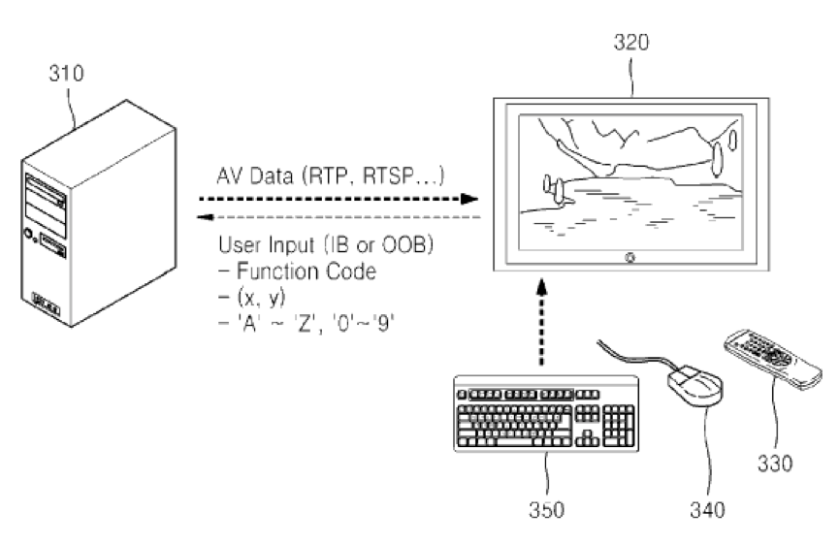 上圖中的示意圖, 左邊的 310 可以換成平板或是手機 (410), 右邊可以換成筆電 (420). 不過手機一定是拿在手上, 自己控制自己就好啦!哪需要用到 UIBC?非也! Samsung 申請了個討厭的專利, 連筆電控制手機都納入了專利的範圍, 還好它在 2010/11/2 申請到現在還沒過.