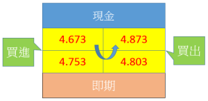 當我們拿 1,000 塊人民幣去銀行存, 它必須經過從 “現金" 變成 “即期" 的過程, 因為後者匯率較高, 所以銀行買下您的人民幣時, 先要扣去 4.753 – 4.673 = 0.08 的匯差, 此時你我的錢就瞬間縮水了 0.08 / 4.673 = 0.0171 = 1.71%. 當我們去提款的時候, 銀行再把即期的人民幣賣給我們 “變成現金". 並且再次扣除 4.873 – 4.803 = 0.07 的匯差, 此時這筆錢又縮水了 0.07 / 4.803 = 1.457%.