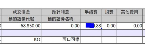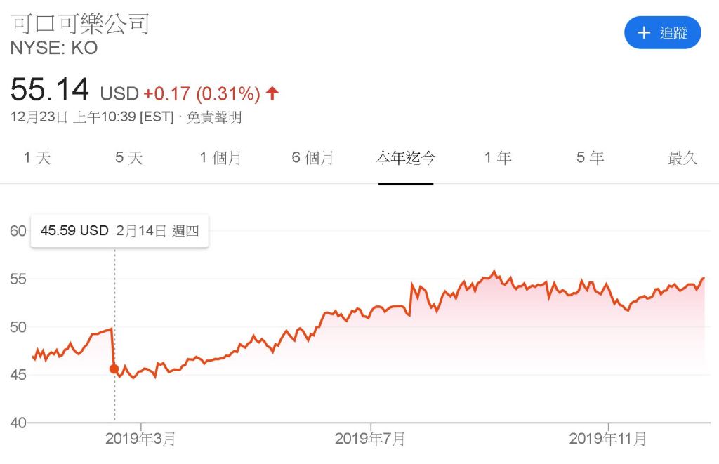比較值得一提的是增持 KO 這件事: 中美貿易戰開打後, 大家好像突然不看好可口可樂在大陸的銷量? 某天我在臨睡前, 心血來潮打開 APP 一看, 天啊, 可樂竟然一天能暴跌 5 塊! 於是就把帳上的現金全梭了. 以我習慣的市價減到 x.9 元字尾下買單, 然後去睡覺. 第二天起床後一檢查… , 看到"全部成交" 反倒有點懊惱, 這一定是買貴了. 雖然沒買到當天最低點, 但至少買到波段最低那附近. 近來可樂終究還了我公道, 慢慢漲回 50 元大關, ㄟ..在我截這張圖的當下已超過 55 元了.