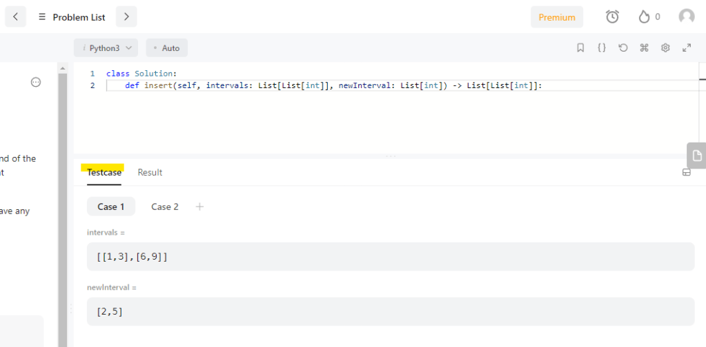 點進去之後. 可以選各種語言. 下面有 test case. 右下角選 run, 然後看 Result 對不對? 對的話就可以按綠色的 Submit. 如果選 auto, 電腦可以自動幫忙完成, 當然那也要花錢錢. 點選題目也可以看別人的解答, Stackoverflow 也一堆解答. 不過我第一個程式當然要自己摸索~~ (當然也就搞笑了).