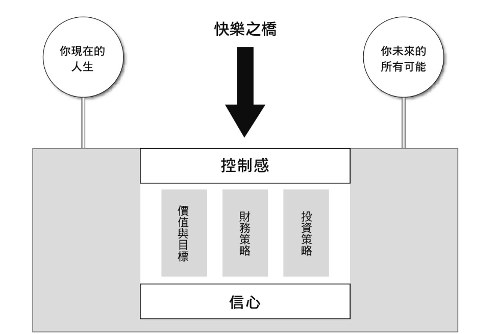 人生就是從現在出發到未來的旅程, 這比直接瞬移到人生巔峰更有意義. 然而這條路上有個快樂之橋, 橋下有三根支柱. 那就是前面說到的目標, 以及如何投資理財. 大家可以發現投資策略和財務策略是分開的兩件事. 此處的目標也自然不只是理財目標, 而是更遠大的自我實現. 目標分為短中長期, 有目標的意義在於往前看而不要一直回顧自己的當年勇.