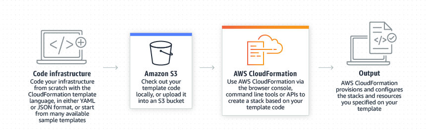 等等! 我剛剛以為 Lambda 不就搞定所有了? 可惜並不是. Lambda 處理的是雲端運算的資源. Cloudformation 處理的是 “Speed up cloud provisioning with infrastructure as cod". 也就是寫寫 code 就設定好雲端了. 兩者的功用的不同恰如章節名稱所示.