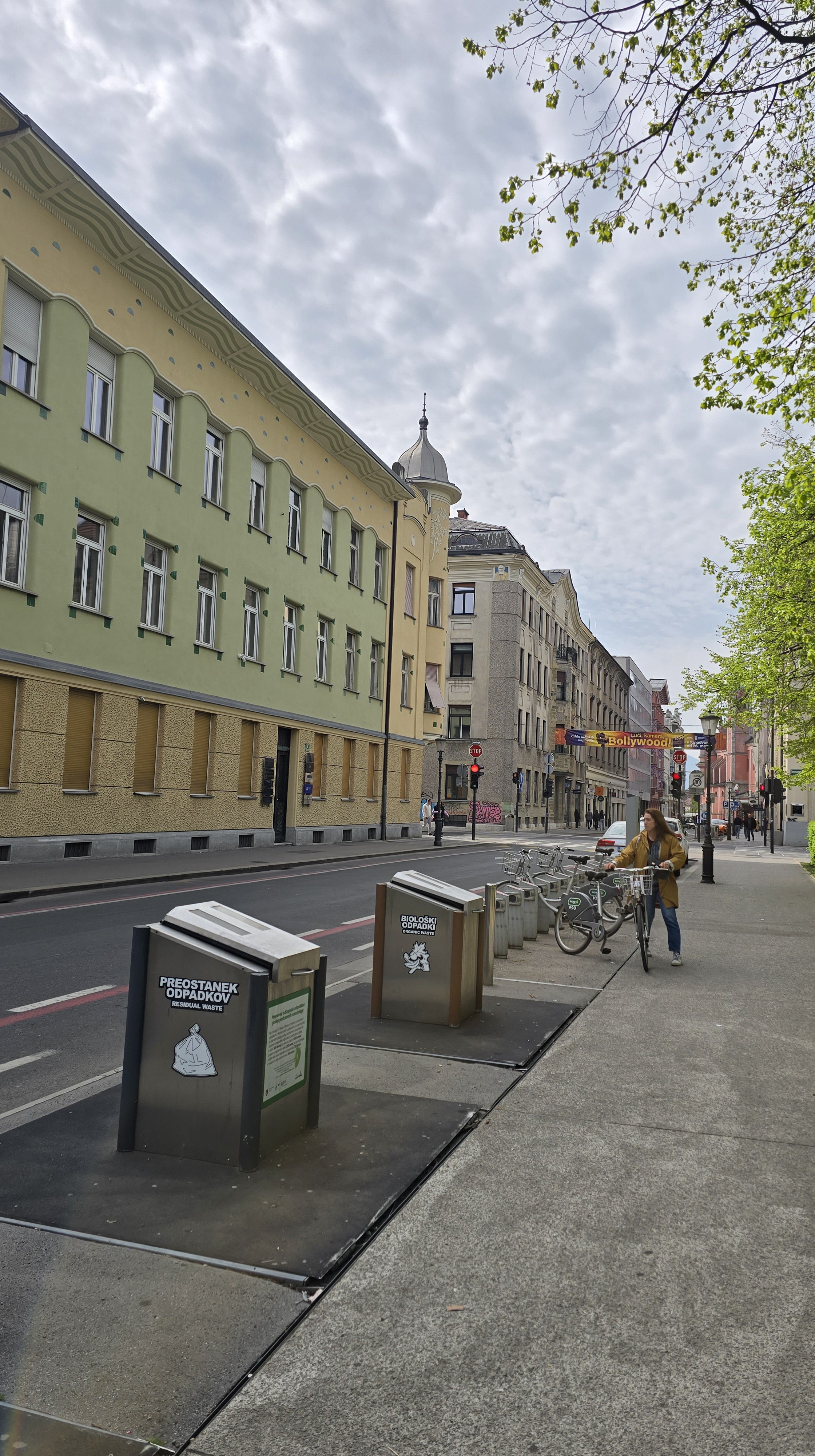 斯洛維尼亞的垃圾桶,我以前就在某 Youtube 看過,它整個埋在地下,用很大的垃圾車才能把它挖出來。而且垃圾不適隨便就可以丟的,還需要刷卡才能丟。右下圖來自 [1],它對盧比安納怎麼扔垃圾有專題報導。
