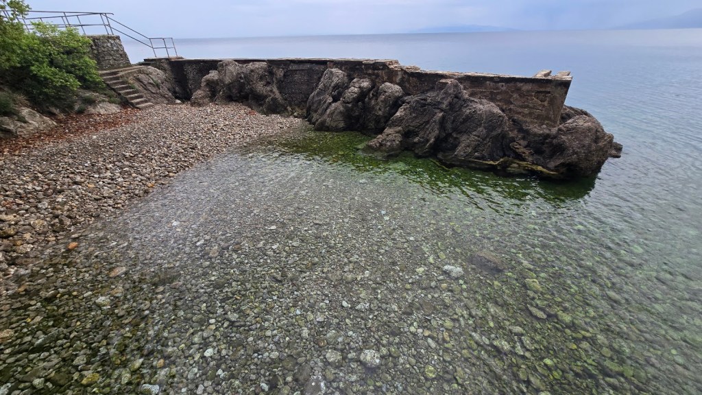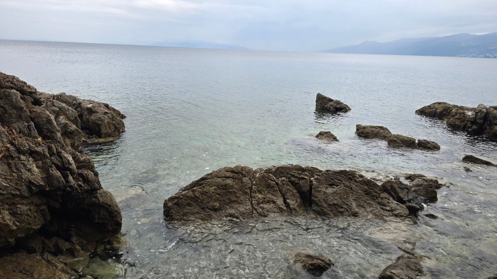 再來就沒有行程了,讓我們在度假中心好好玩。Check in 高級的 Hilton Rijeka Contabella Beach Resort 後,其實我也不想去游泳池、健身房,就去海邊探險。亞得里亞海岸的海水清澈見底。我一隻魚也沒看見,但是確實有人在釣魚。