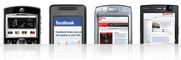 下圖取自 Skyfire 網頁, http://www.skyfire.com/product, 由左至右是 Hulu, facebook, CNN, Yahoo 的網頁.
