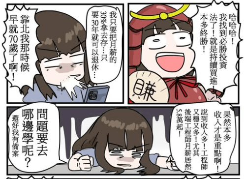另外有一個觀點最近很多人都提到, 那就是生活成本佔窮人的收入比重比富人高. 所以薪資看起來只差一倍, 可儲蓄的金額卻差了不只一倍. 因此致富的前提是先要增加收入, 這樣才有餘裕投資 (p. 15~p.17). 另外根據邊際效用遞減, 有錢人就算所得高了 14 倍, 開銷只多了 3.3 倍 (p.18). 這點在台灣是否成立我不太清楚. 我覺得竹科的同事看起來都很有錢, 用得東西也比我高級多了…