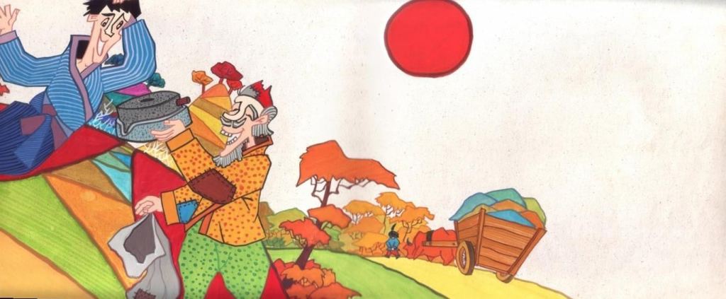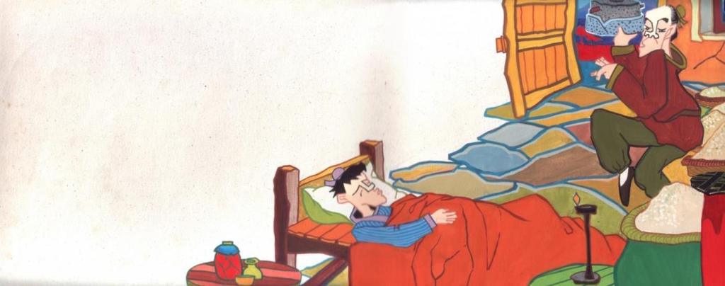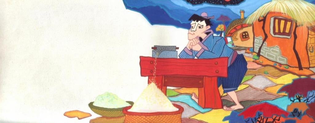話說鬼太郎的作者村井茂 (筆名水木茂) 有兩個女兒: 藍子和喜子. 藍子遺傳父親畫圖的天分, 喜子遺傳了爸爸的好胃口.