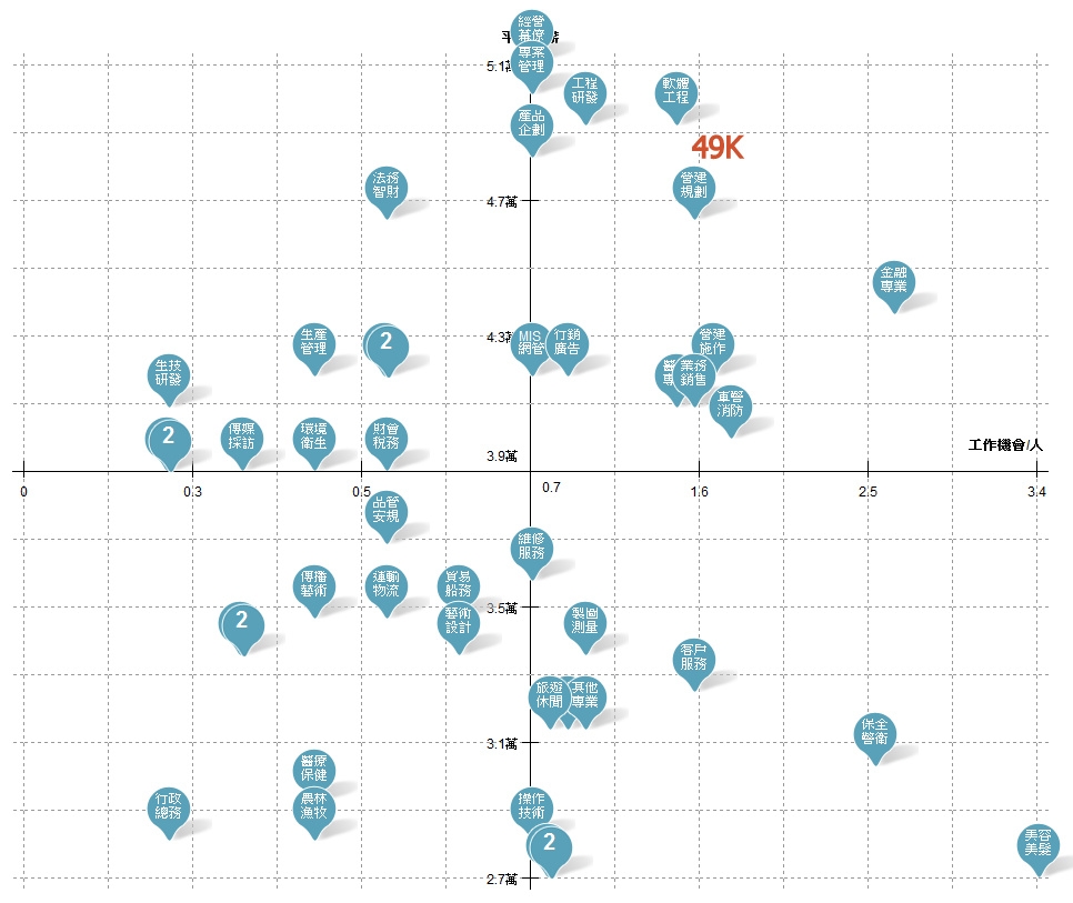 這裡面不可控制的天分因素和技能養成所需要的環境和時間, 當事人也並非全無覺悟. 因此暫時或是認命地接受現在的環境, 恐怕才是大多數人心理的想法. 畢竟不滿意薪水的比例 (58.7%) 遠遠多過於業界的離職率 (依經驗估計是 15%). 雖然悶但不離開, 正是其他因素發揮了作用, 這正好解釋了: 興趣, 同事, 老闆, 大餅 (前景),…得以名列前茅的原因.