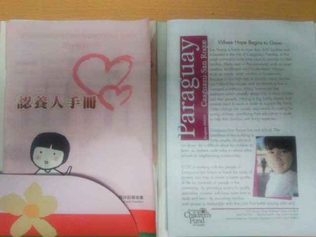 我收到的認養資料包括了一本厚厚的認養人手冊, 巴拉圭 (Paraguay) 的中英文簡介, 還有一張附兒童照片的聯絡資料. 想和認養兒童的聯絡的話, 需要透過巴拉圭的 “聖羅奎台灣認養專區“中心轉信, 沒辦法自己聯絡. 我認養的小朋友就是來自聖羅奎 (San Roque) 地區, 是一個小學三年級的女生 Celina, 看照片長得很可愛.