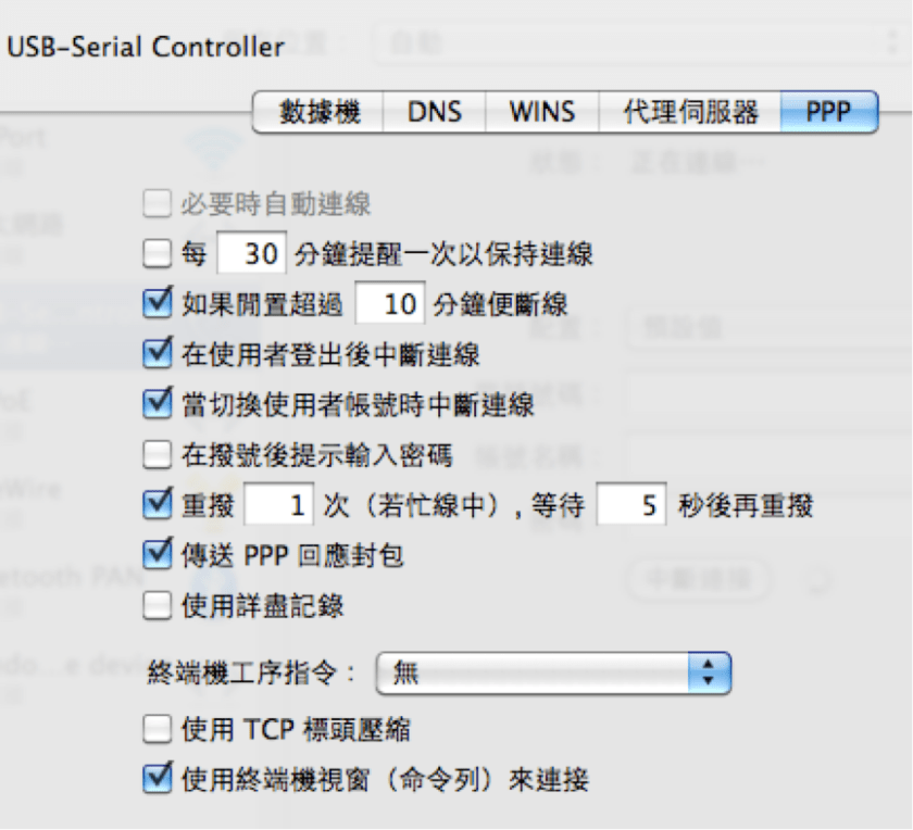 此外, 就是要記得把終端機打開, 終端機命令取消.