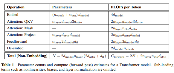 根據 [2], 跳過各種英文或數學, 3.3 或 5.1. 裡面都引用了 C = 6NBS. 其中 C = training computing, B = batch size, S = number of parameter updates (訓練總 token 數), and N = non-embedding parameter count (參數數量).